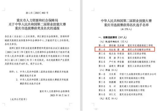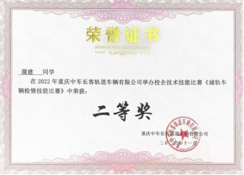 大二学年,他参与了校级本专业相关的所有竞赛。到前往重庆中车长客轨道车辆有限公司参加城轨车辆检修比赛,再到中华人民共和国第二届职业技能大赛轨道车辆技术赛项,由重庆市人力资源牵头,历时6个月的集训,三次重庆市赛选拔。在集训过程制定了严格的训练计划、专业的培训课程和艰苦的挑战目标。每一天,都努力超越自己的极限,不断突破自我。集训对他来说是一段艰苦而充实的旅程。他意识到,要在竞争激烈的赛场上脱颖而出,只有不断地训练和精益求精。所以他荣获中华人民共和国第二届职业技能大赛轨道车辆技术重庆市二等奖,也荣获重庆市人力资源和社会保障局颁发的铁路车辆制修工技师职业资格证书,也为电子游戏取得重庆市优秀组织奖,金砖国家职业技能大赛轨道车辆技术重庆市二等奖,重庆中车长客轨道有限公司城轨车辆检修技能比赛二等奖。