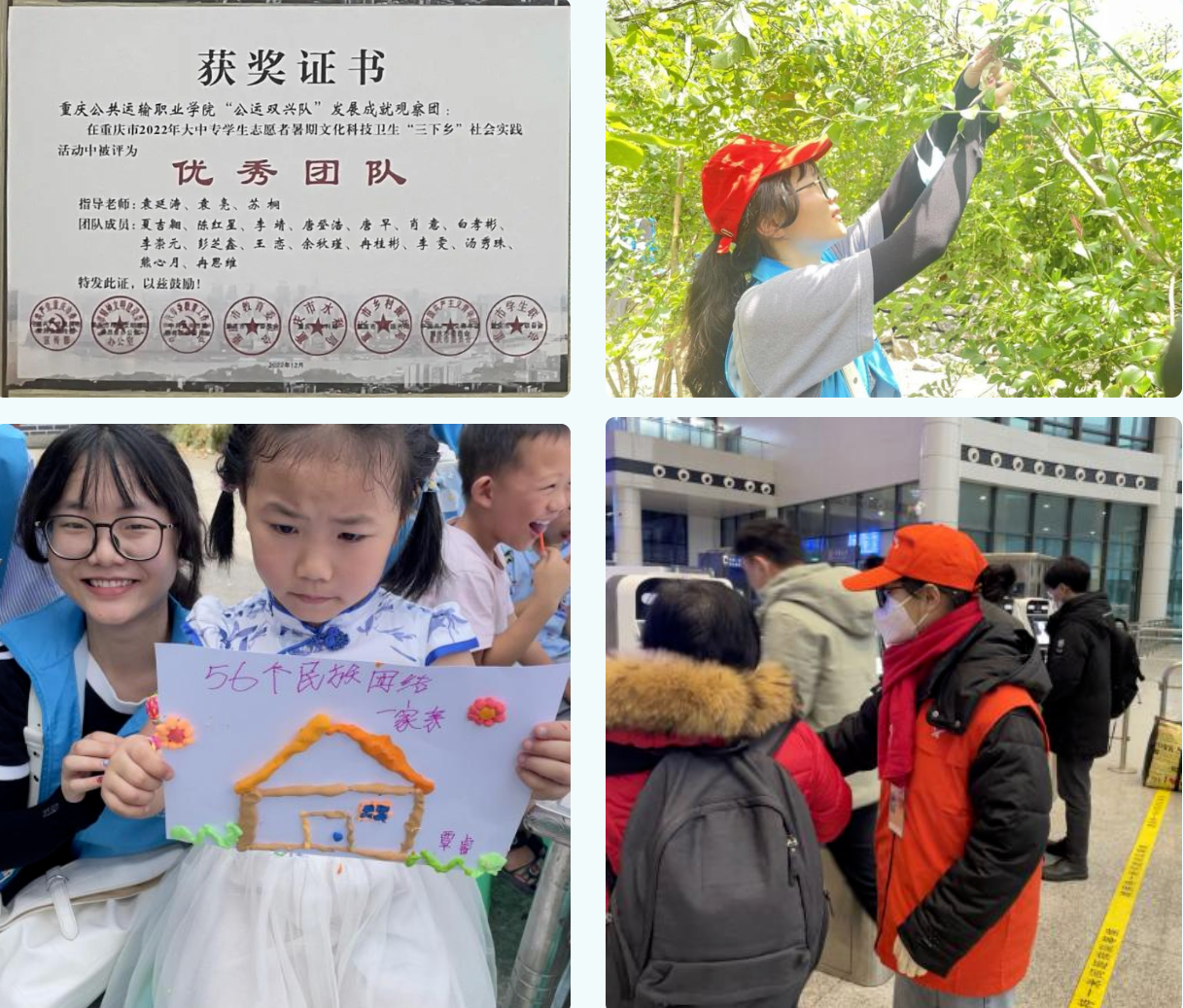 追随的光是五角星的光。她始终牢记党员服务群众的责任担当,致力参加各类社会实践和志愿服务活动,累计社会实践时600+,志愿时500+,受到4次市区级以上感谢表彰,用行动彰显公运学子担当。作为“返家乡”的实践青年,她在家乡宣传公运、进行资助政策解读以及基层服务,宣传人数达100人;在重庆北站“暖冬行动”活动服务人次超过500人;在疫情期间,她协助社区疫情防控指挥部为1.2万余居民进行核酸检测,累计服务人数超过6万人次;2022年暑假期间,前往黔江区沙坝镇三下乡,进行实地访谈,她用文字和镜头记录所见所闻,累计发表国家级新闻稿7篇,并且稿件是学校唯一进入中青网22年优秀稿件遴选,荣获22年度三下乡优秀团队。以青春之声将理论与实践相结合,多次获评社会实践优秀团队,社会实践优秀个人。