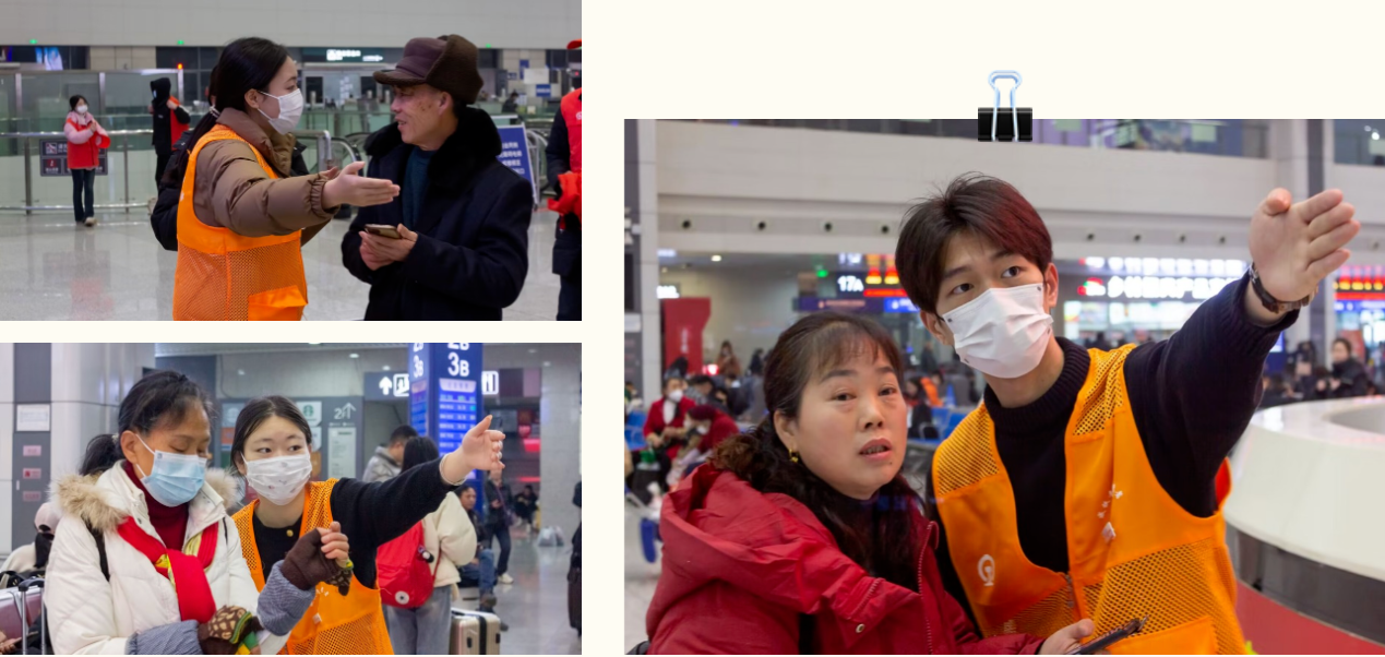 “您好,请问有什么可以帮助您吗?”“您的检票口在这边,我领你过去吧!”在重庆北站广场和站内,随处可见志愿者,他们热情地为往来旅客解决出行难题,细心地引导旅客分流进站,用最贴心的服务温暖着旅客。