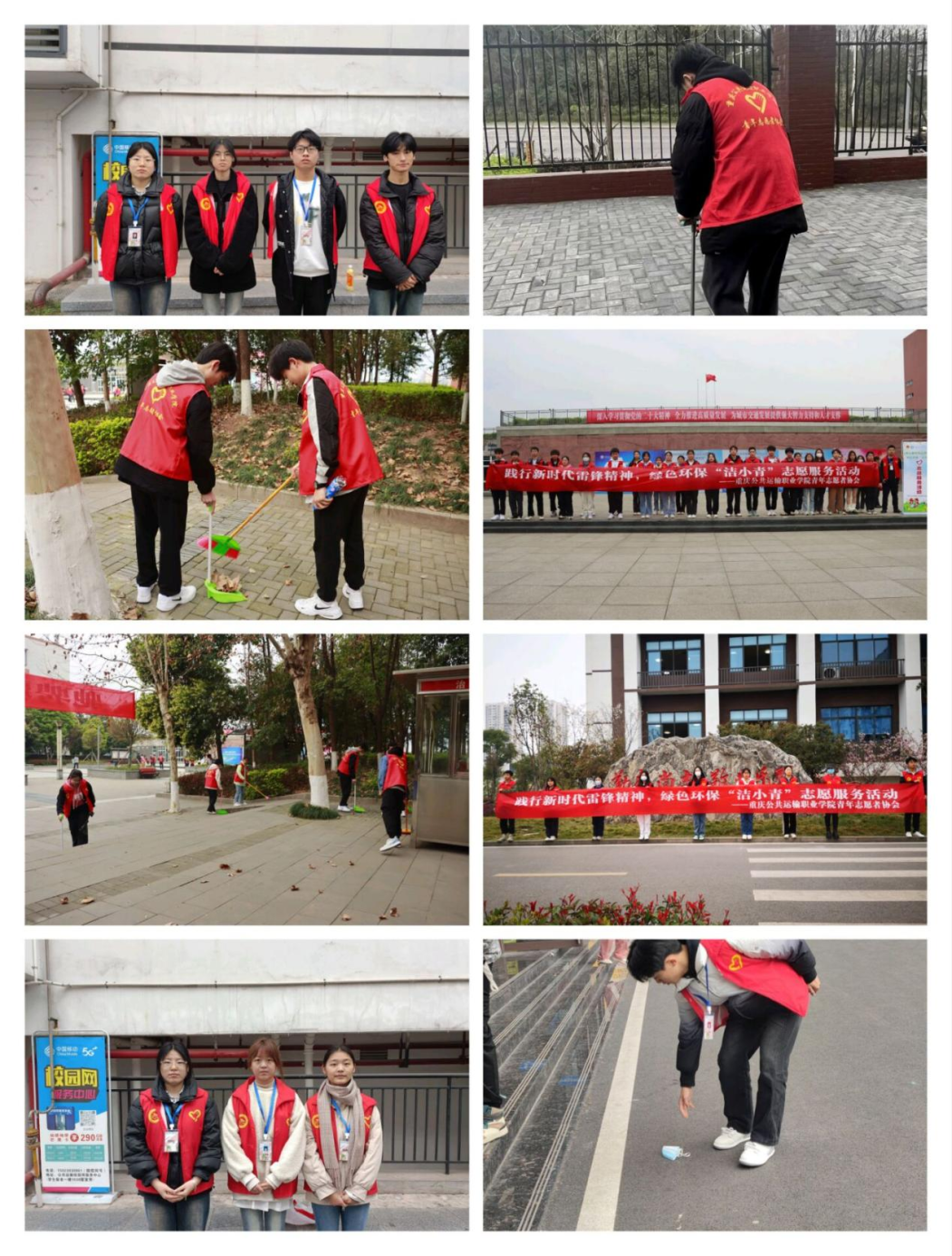 同时还组织了数名志愿者对学校教学楼、校园绿化带、操场等公共场合的落叶、白色垃圾进行清理,志愿者们在劳动中体会雷锋的奉献精神。希望可以通过“洁小青”志愿活动,能够积极引导广大青年在生态环境保护工作中充分发挥作用,传播绿色生态理念,以实际行动书写新时代的雷锋故事。