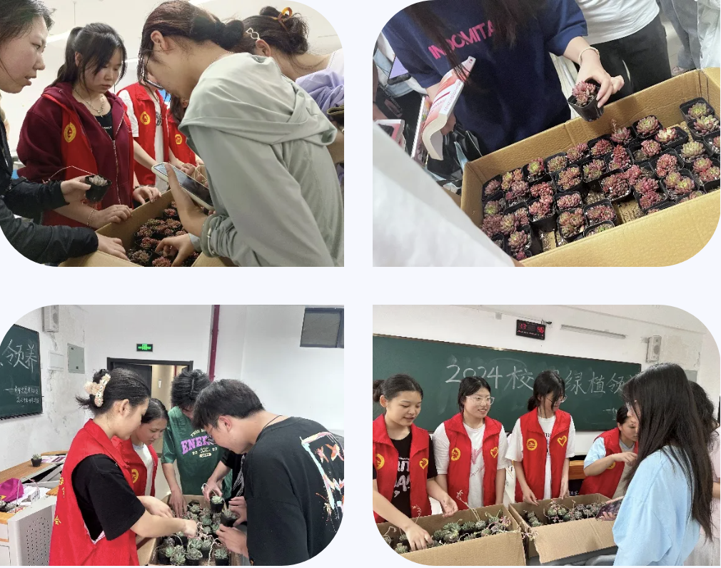 本次活动通过抖音app进行注册,采取线上宣传、线下领取相结合的方式。由逐梦部落提供的300盆绿植,在志愿者们的悉心照顾、整理、呵护下,井然有序的发放到全校同学手里,绿植盆栽种类多种多样、品种新颖。同学们精心挑选自己中意的绿植盆栽进行养殖,并且拍照留恋,获得了自己喜爱的多肉植物纷纷露出了满意的笑容。