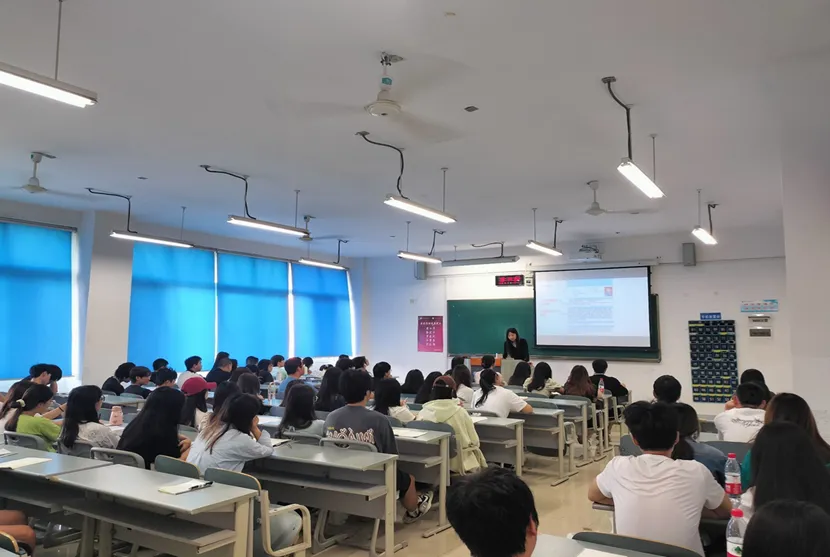 陈诗老师用自身及身边人的真实故事给同学们作参考。嘱咐即将进入实习阶段的同学们要找准自身定位,树立职业理想和就业观念,明确就业目标,从自身发展的长远角度,制定职业规划。她还向同学们介绍了当前的就业环境,阐述了不同单位类型的工作特点,希望同学们要多听、多问、多看、多尝试,出现问题要及时向老师寻求帮助,在剩下的在校生活中同学们要关注时事与形势,确定方向、踏实奋斗、提高效率。