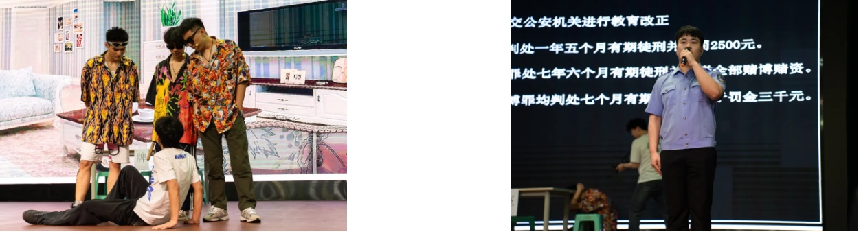 最终,经现场评委对剧本编写、舞台效果、现场演绎以及主题教育意义等方面综合评选,由公共管理学院推送的《 黑狗——无畏阴霾,逐光前行》获一等奖;智慧交通学院推送的《双面镜》、五年一贯制学院推送的《和解》获二等奖;运输贸易学院推送的《迷失与救赎》、智慧交通学院推送的《反转人生》、轨道交通学院推送的《赌进深渊》获三等奖。