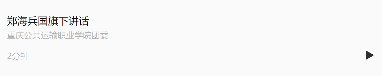 我是21级重庆交通职业学院毕业生现助理值班员三班、涪陵车务段【郑海兵】,非常荣幸能够在国旗下与大家分享作为成铁新青年的一些感悟。