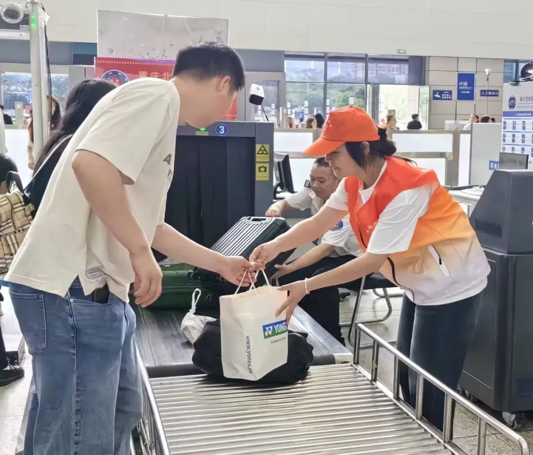 我的岗位位于重庆北站北广场北二进站口,帮助工作人员传递行李,协助检查旅客们行李中的违禁物品。我作为北二的小组长,带着组员去补充车站工作人员的力量,为乘客提供引导、答疑解惑、协助搬运行李等服务,让乘客出行更顺畅、便捷,让乘客感受到社会的关爱和善意,有助于营造和谐友爱的社会氛围。