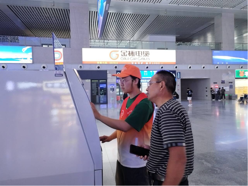 在志愿服务过程中,我帮助了许多旅客,在遇到腿脚不方便的旅客时,我们带领其前往特殊通道进行便捷检票,确保旅客能够顺利上车。
