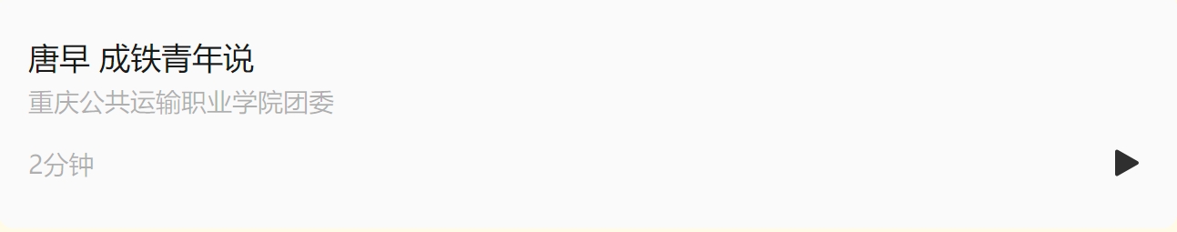 大家好!我是线路二班的唐早,来自遂宁工务段,很荣幸能在这里进行“成铁青年说”的演讲。