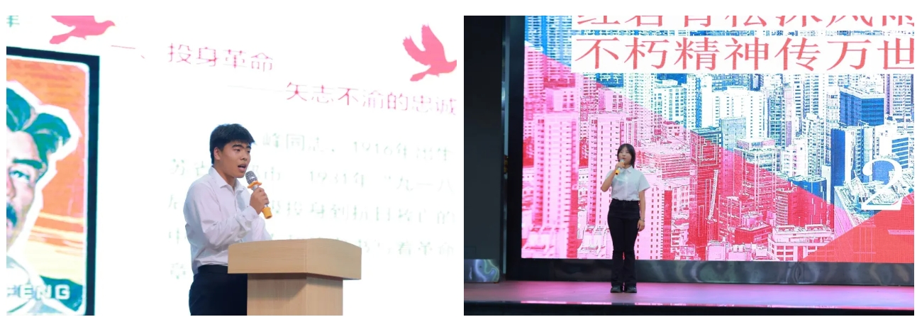 刘家伽、冉诗渝、段宏霖等同学在红岩故事革命展演活动中,以深情并茂的语言和真挚的感悟,向在场师生讲述了红岩革命的历史故事。他们的分享不仅让师生们更加深入地了解了红岩革命的历史背景和精神内涵,也激发了大家对于学习和传承红岩精神的强烈愿望。