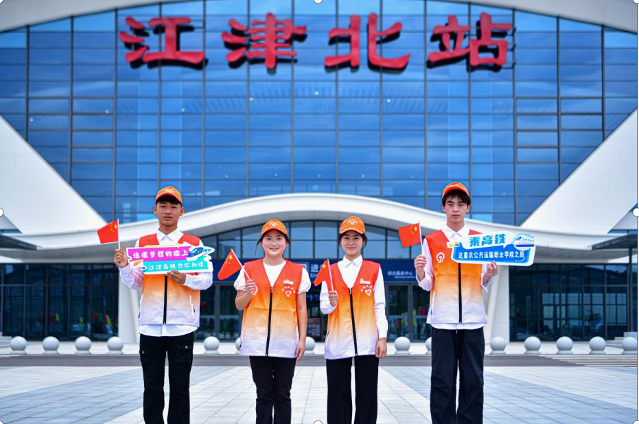 9月29日是渝昆高铁开通运营的第一天。受重庆车务段团委邀请,学校选派5名青年学生志愿者,到刚刚开通的渝昆高铁江津北站,就近“上岗”开展铁路志愿服务活动。