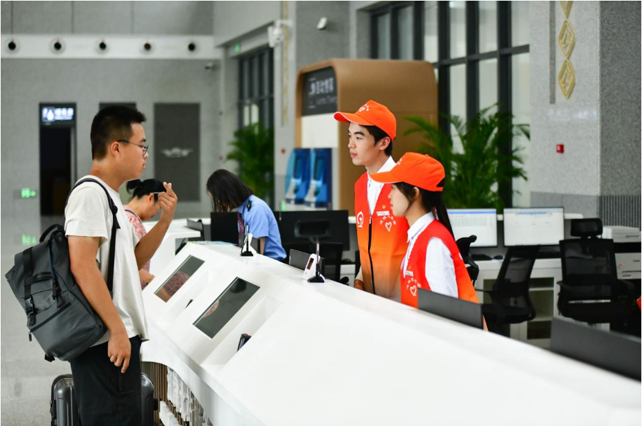 活动过程中,同学们在车站工作人员的指导下,在候车大厅、服务台、检票口、站台等点位,为当日出行旅客提供信息咨询、方向引导、重点旅客帮扶等服务,受到各方好评。