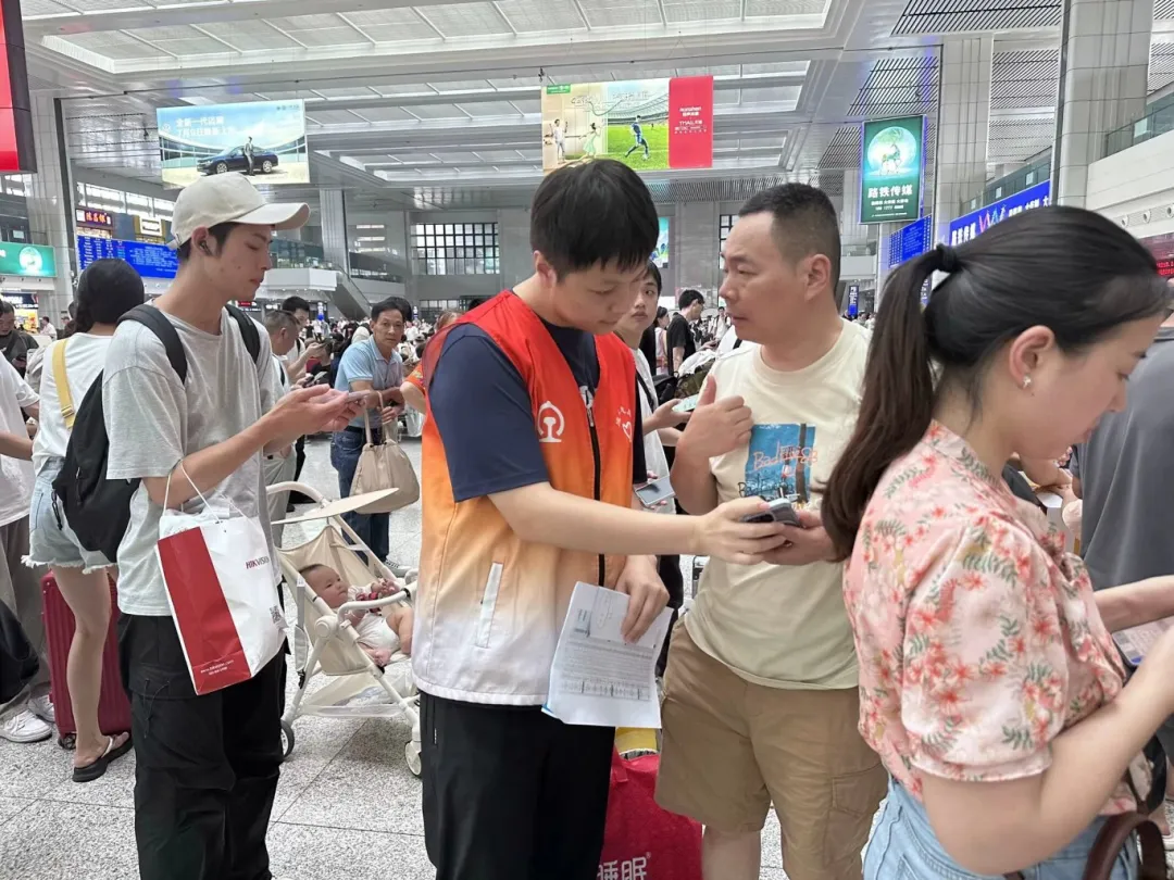 为弘扬“奉献、友爱、互助、进步”的志愿服务精神,规范铁路志愿服务活动,促进铁路志愿服务健康发展。澳门正规电子游戏平台重庆车站暑假“红岩”志愿者于2024年8月3日在重庆北站、荣昌北站、万州北站、永川东站、黄水站开展志愿服务活动。同学们上岗之后,认真履行自身义务,为旅客们答疑解惑,维护车站秩序。