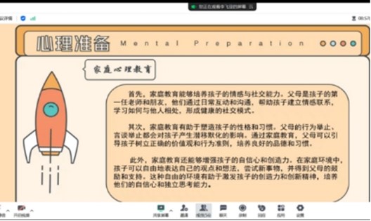 大学生心理健康家长会在2024年10月10日晚上正式开始,参加家长会的有交通运营管理2201-2203班、统计与会计G2301-G2302班、市场营销2201班、关务与外贸2202班、跨境电子商务2201班全体同学的家长。此次家长会将以线上的形式进行。