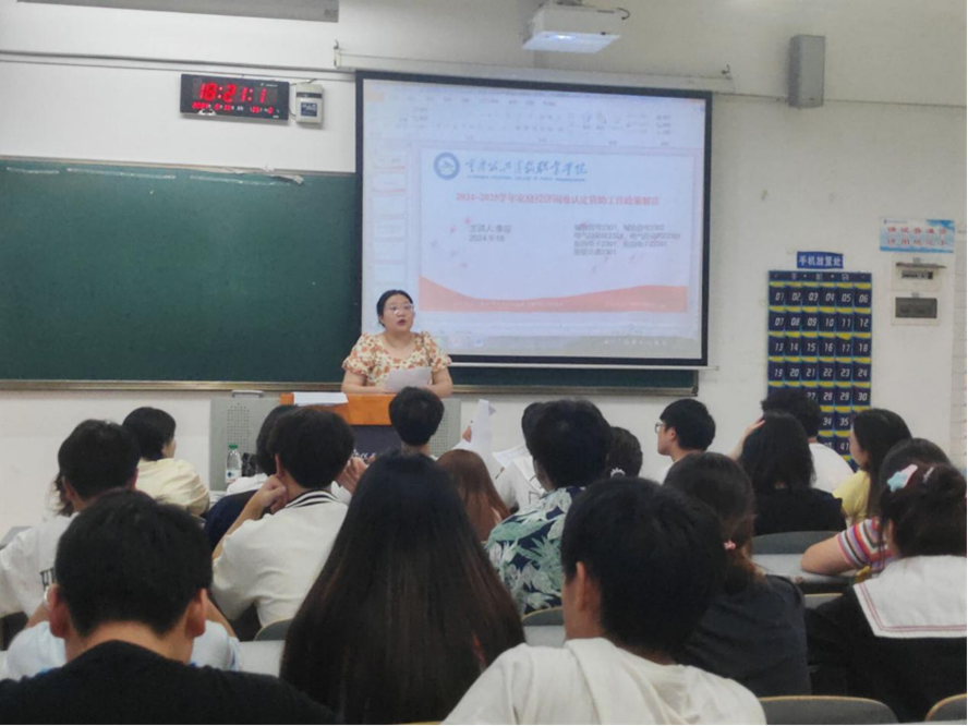 为确保国家资助政策精准落实,李芬老师于2024年9月18日在B407召开了家庭经济困难学生认定工作主题班会。