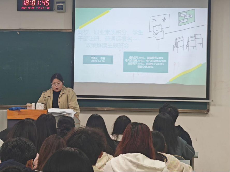“驾校新规、职业素质积分、学生干部住册及普通话报名——政策解读”主题班会
