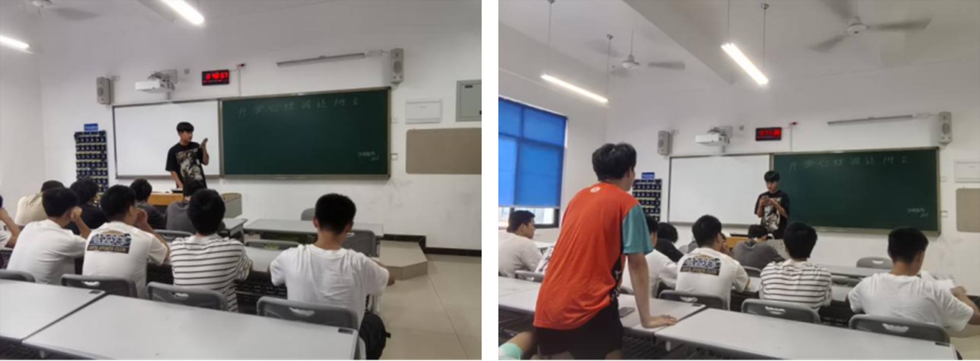 本次班会进行到第二项心理调试。心理委员胡文浩从心理建设的角度出发,为我们介绍如何进行情绪管理,以及如何解决在生活和学习中遇到的心理问题。