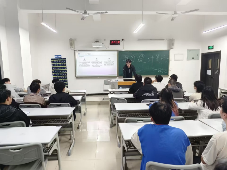 会上,为提高学生学习效率与内驱力,辅导员袁佐霄就“学风建设的重要性”“学习提升方法”“学习目标确立”“学习进阶策略”等方面展开讲解,同学们认真聆听,现场气氛良好。