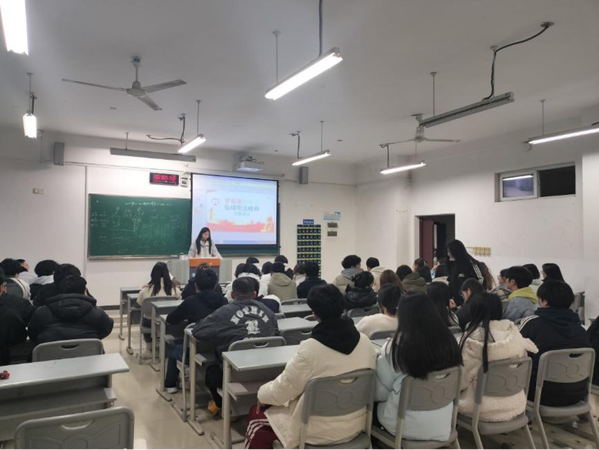 为深入学习贯彻党的二十大精神,贯彻落实习近平法治思想和习近平总书记关于宪法的重要论述,弘扬宪法法治精神,加强对青年的宪法法治教育,2024年12月1日晚,铁道信号Z2201-Z2202班在新校区开展了以“学宪法 讲宪法”为主题的班会活动。
