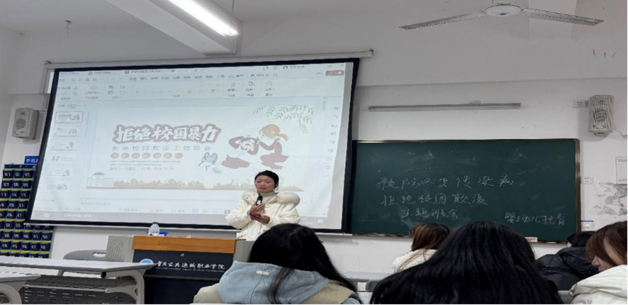 2024年10月23日晚上,肖露兰老师于新校区A102教室为24级婴幼儿托育开展了预防冬季传染病与拒绝校园欺凌为主题的班会。此次班会重点聚焦冬季传染病预防与校园欺凌问题,致力于提升同学们的自我保护意识,营造安全、健康的校园环境。