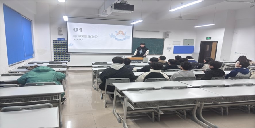 随后,曾默含详细讲解了期末考试的规范流程,包括需携带的考试证件及正确摆放位置,并对各类作弊形式进行了详细解析,以此警示同学们坚守诚信原则。同时,他着重强调了考场规则,要求同学们严格遵守校规校纪与考试纪律,服从教师安排,如同在社会生活中遵循法律法规一般,这是每位学生应尽的基本义务。