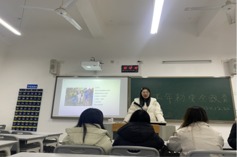 最后,罗雪梅老师向学生们讲解了寒假期间的安全问题。她提醒学生们离校前务必妥善保管个人物品,特别是贵重物品切勿留置宿舍,并强调了保持宿舍清洁卫生的重要性。对于最后离开宿舍的同学,应该与楼栋管理员联系,办理好相关手续,确保安全离校。到家后,学生们应通过短信的方式在班级群里报平安,告知大家已安全到家。此外,她还鼓励学生们假期中既要充分放松身心,也不忘学习,合理规划时间,让假期既充实又充满乐趣。