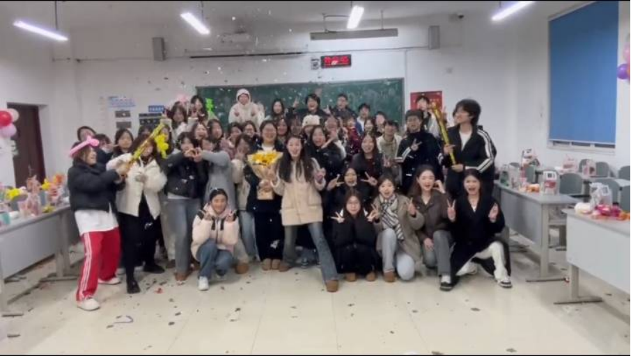 时光飞逝,晚会渐近尾声。班长刘彬走上台前,感慨地总结道:“我们从初秋相聚,在冬至分别;过往满是繁花,未来定如群星闪耀。”话语中,既有对往昔校园生活的眷恋,也有对同学们未来的坚定信心 。