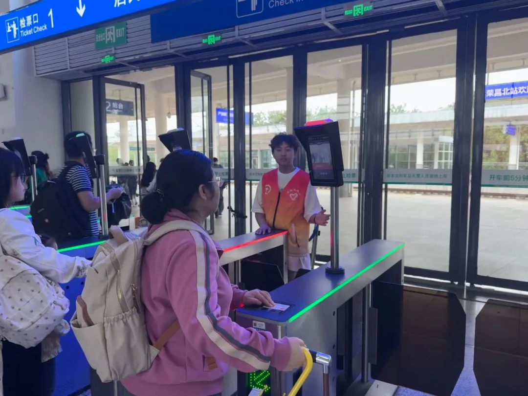 我站在荣昌北站候车大厅,穿着熟悉的志愿者马甲,胸前挂着工作牌,感觉自己就像是一个小小的守护者,守护着这里的秩序和安宁。