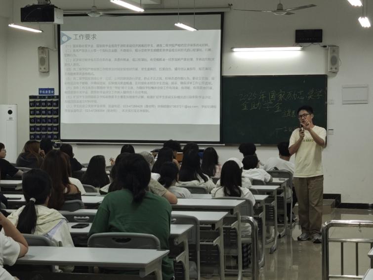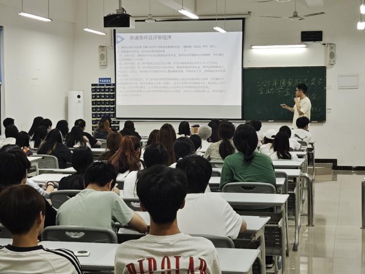 随着国家对高校学生的关怀与支持持续深化,为精准落实国家资助政策,保障2025年奖助学金评审工作规范有序开展,工业设计与环境艺术专业2025级全体学生近日在新A104教室召开专题解读班会。会议由辅导员李龙老师主持,全体学生参加。
