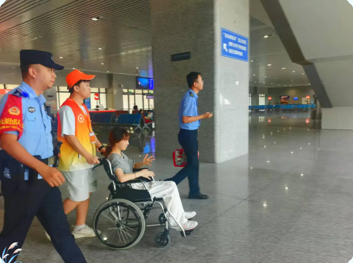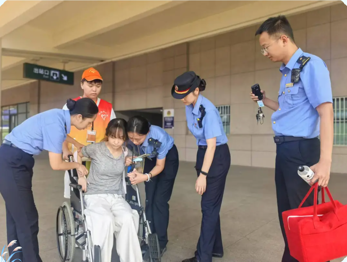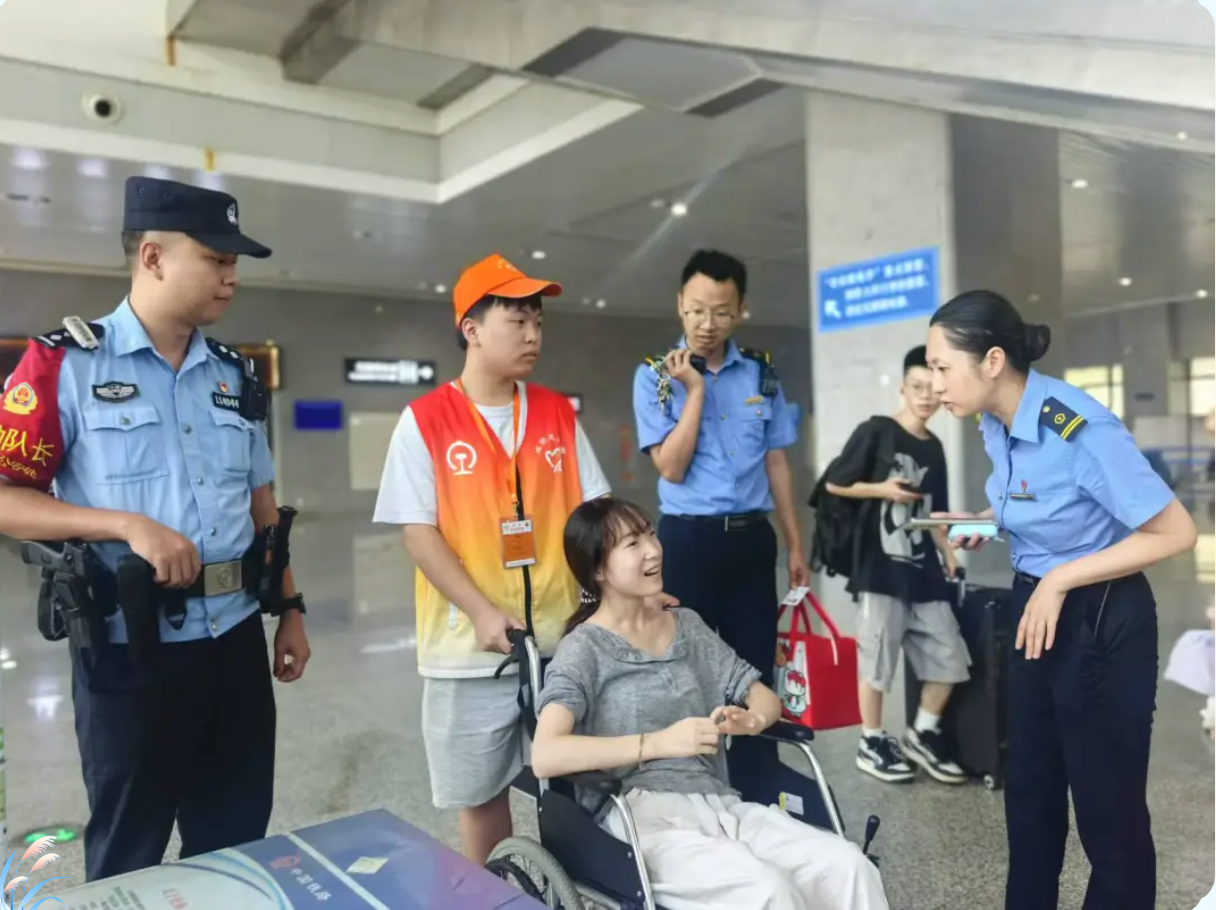 彼时夕阳的余晖仍带着灼人的温度,空气中热浪未消,在推送旅客前往救护车停靠点的路上,张鑫诚的橙色志愿马甲早已被汗水浸透,却始终全神贯注守护旅客,直至顺利交接给医护人员。望着远去的救护车,他轻轻摩挲轮椅扶手,这暖心一幕,为暑运“红岩车站”志愿服务画上温情句号。