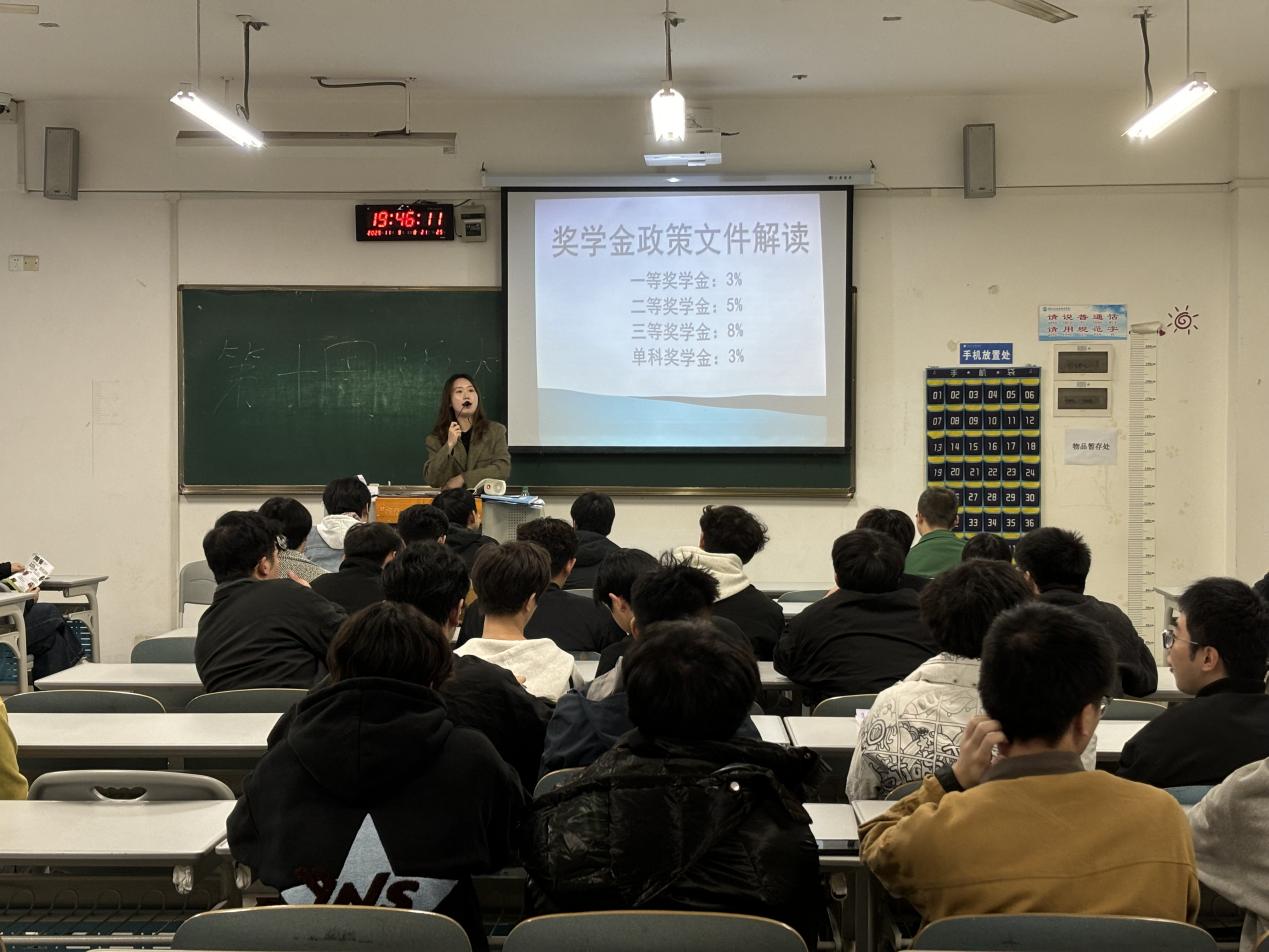 不仅如此,张雯老师还特别针对学业成绩和综合测评这两项关键指标进行了深入解读,解释了它们在奖学金评选中的重要性和具体计算方法。同时,她还针对同学们在奖学金申请过程中可能遇到的常见问题,如材料不全、时间错过等,给出了明确的解答和建议,确保每位同学都能清晰理解并顺利参与奖学金的评选过程。通过张雯老师的讲解,同学们对奖学金的相关政策和流程有了更加全面和深入的了解。
