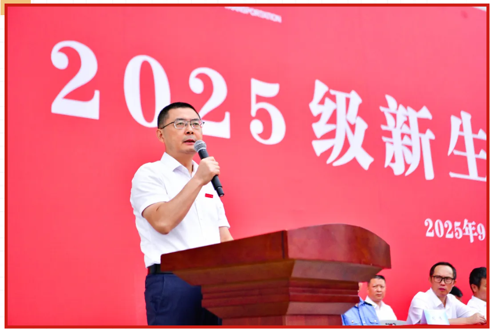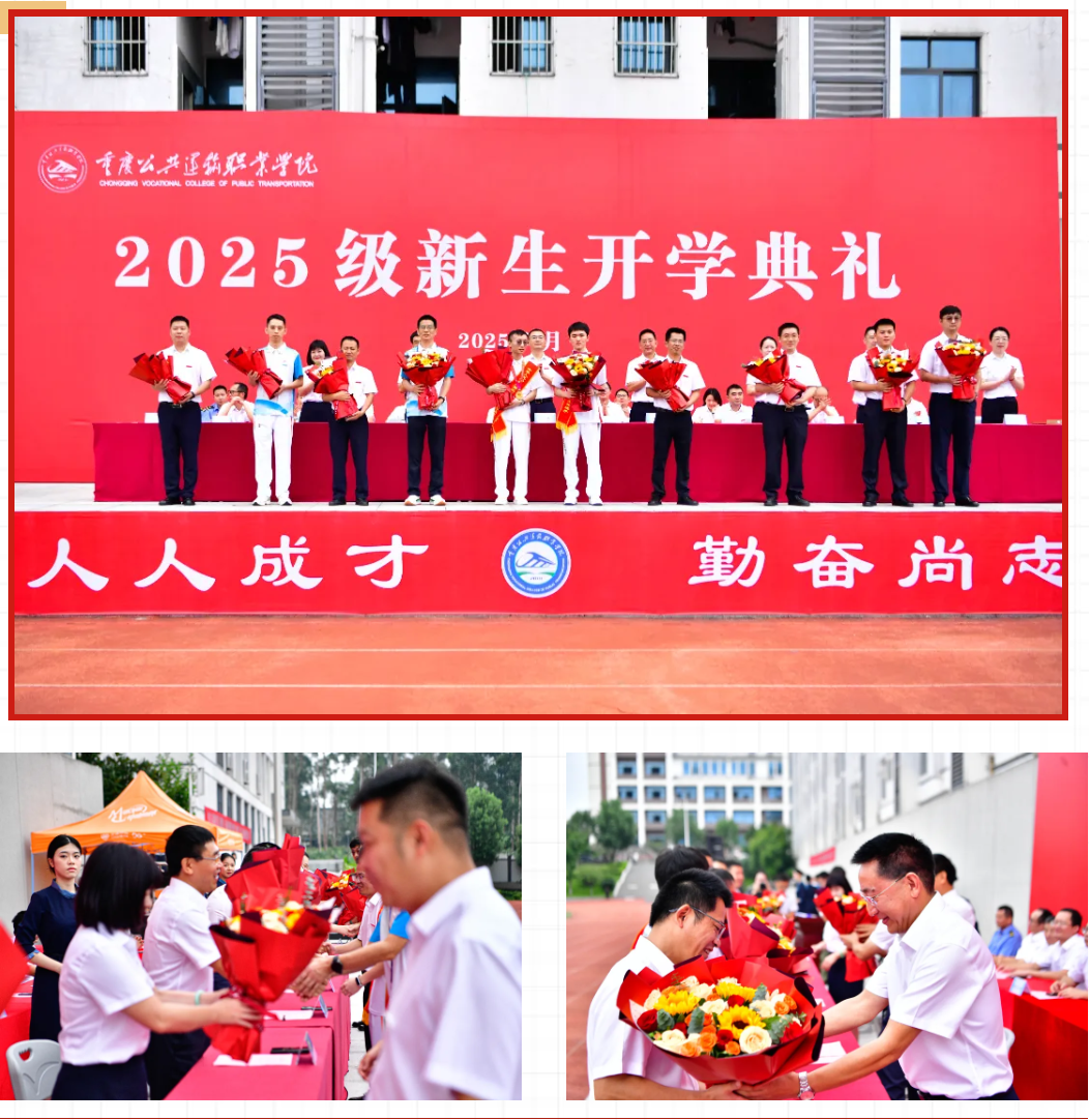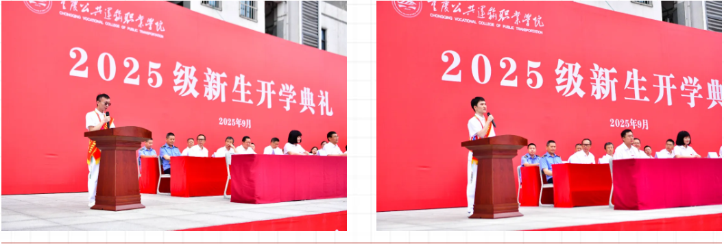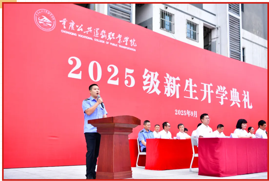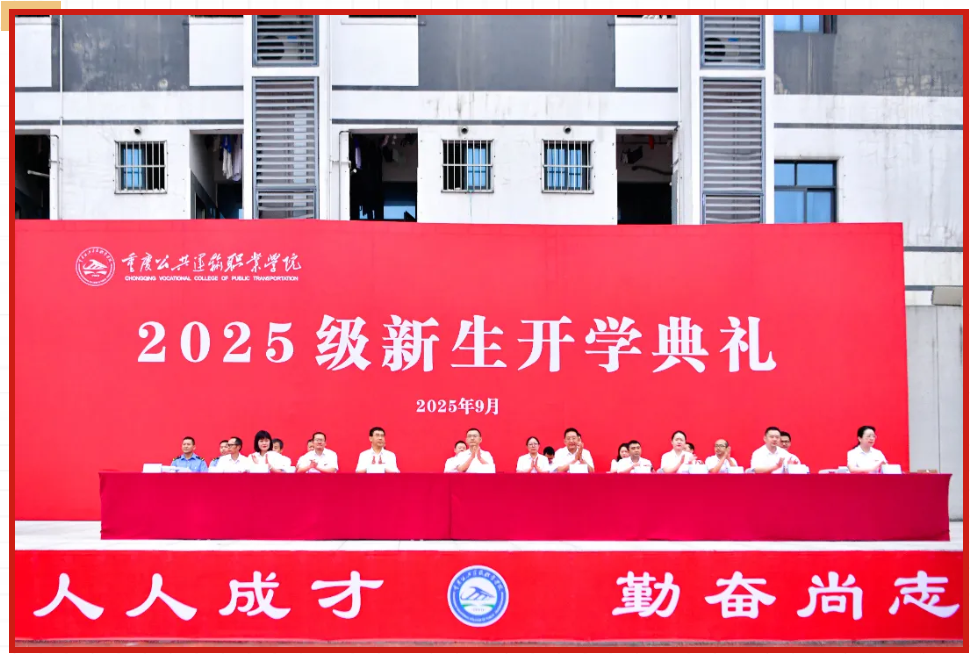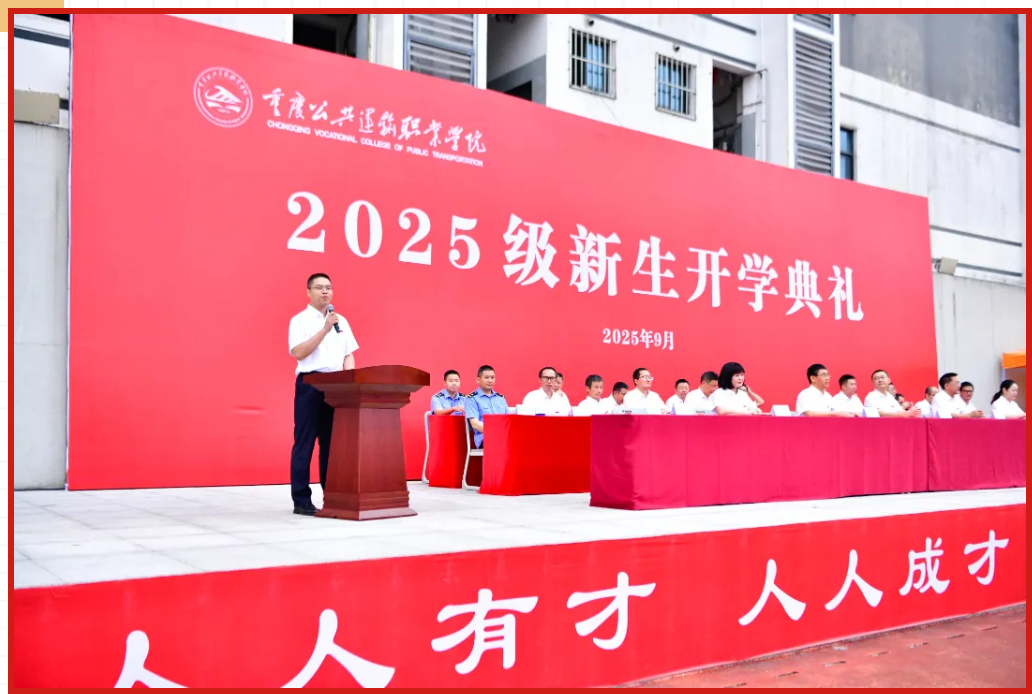 2025年9月25日,重庆公共运输职院新校区举行2025级新生开学典礼,含颁奖、代表寄语,校领导寄语新生淬炼技能、坚守匠心。