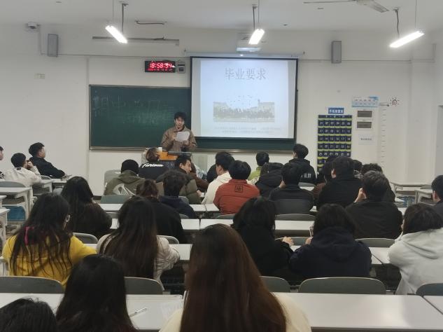 明确毕业要求,奔赴璀璨前程。为帮助同学们清晰把握毕业核心要求,顺利完成学业,开启人生新篇章,2025年11月16日,轨道交通学院铁道供电2401班在B307教室举办了大学生毕业要求介绍班会,本次班会由向凯峰同学主讲。