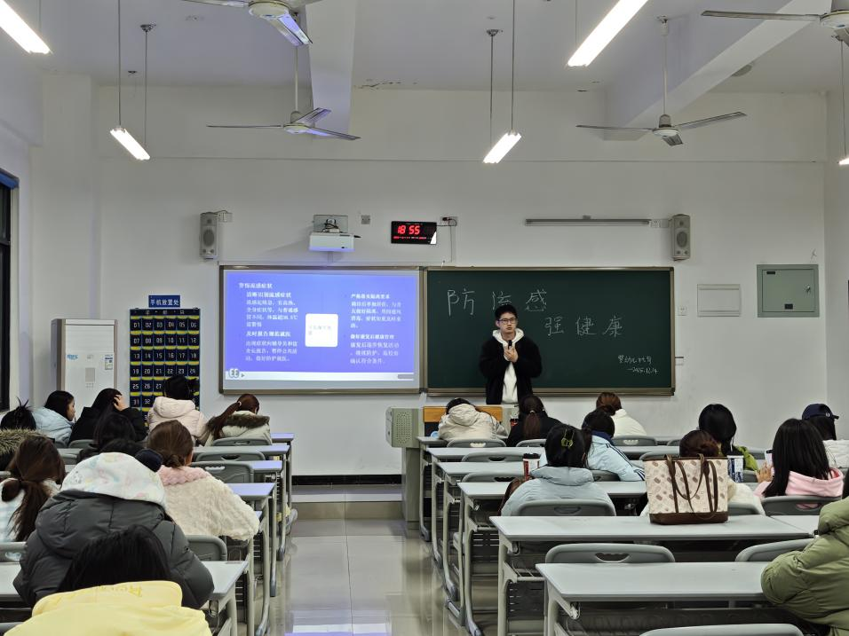 随着冬季流感高发期的到来,为切实保障学生身体健康,12月14日,在辅导员李龙老师的组织下,工业设计、环境艺术、婴幼儿托育、社区管理等专业全体学生于新B206教室开展“流感防护,守护健康”主题班会。