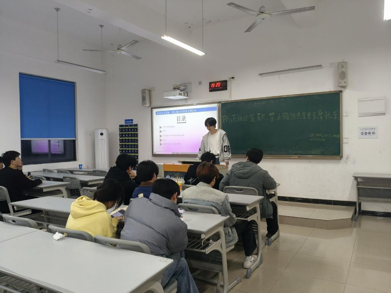为进一步增强学生的风险防范意识,规范共享单车骑行行为,营造安全、文明的校园环境,2026年3月22日晚19点,2024级工业设计、环境艺术设计、社区管理与服务全体同学在新校区B306教室开展“防范非法贷款,禁止骑行共享单车摩托车”主题班会。