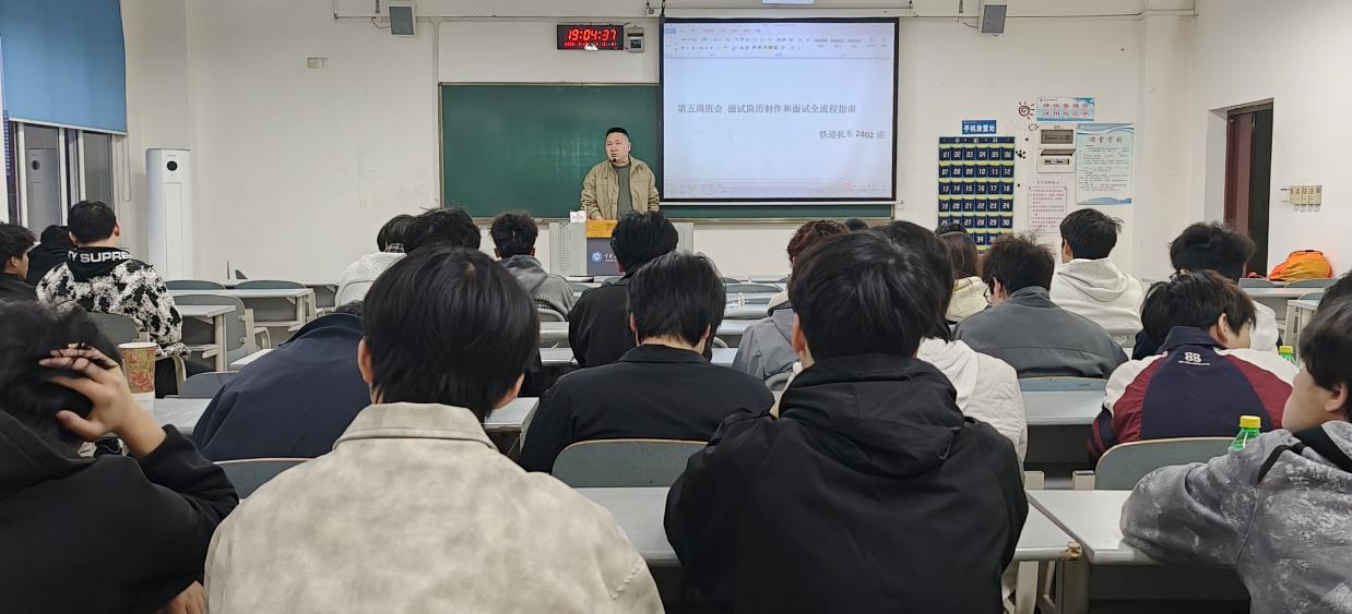 随着求职季的临近,为帮助同学们掌握简历制作技巧,提升求职竞争力,轨道交通学院铁道机车2402班于3月29日在主校区B405教室开展了简历制作指导主题班会。