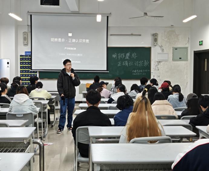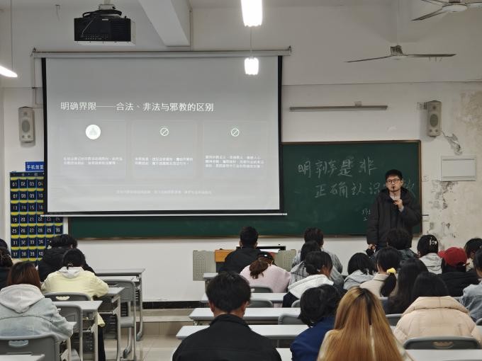 李辅导员紧扣筑牢“青年思想防线暨正确认识宗教”核心主题,结合专业特点与青年学生思想实际,深入阐释宗教政策核心内涵,清晰划定校园严禁宗教活动的纪律红线。他指出,青年学子需树立科学理性的认知体系,自觉抵制非法思想渗透,在专业探索与成长路上,始终保持正确的价值导向,共同维护健康清朗的校园氛围。要深刻认识到校园是传播科学知识、培育时代新人的主阵地,绝不容许任何形式的宗教渗透,必须以理性思维辨别是非,以坚定立场抵御诱惑,将个人发展与国家需求紧密结合。