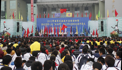 2012年世界艾滋病日宣传活动暨重庆市首届“红丝带”杯大学生篮球赛于12月初在重庆文理学院举行。为展示我院良好的精神风貌,学院领导高度重视,精心组织我院男、女篮球队参加了比赛。
