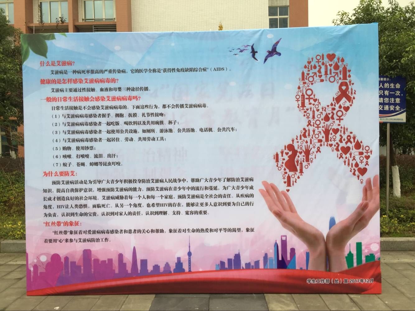 此次的“12.1”防艾活动的宣传工作也得到学院的支持,通过微信、qq空间、贴吧,张贴海报、挂横幅、喷绘、宣传展架等进行了大力宣传。