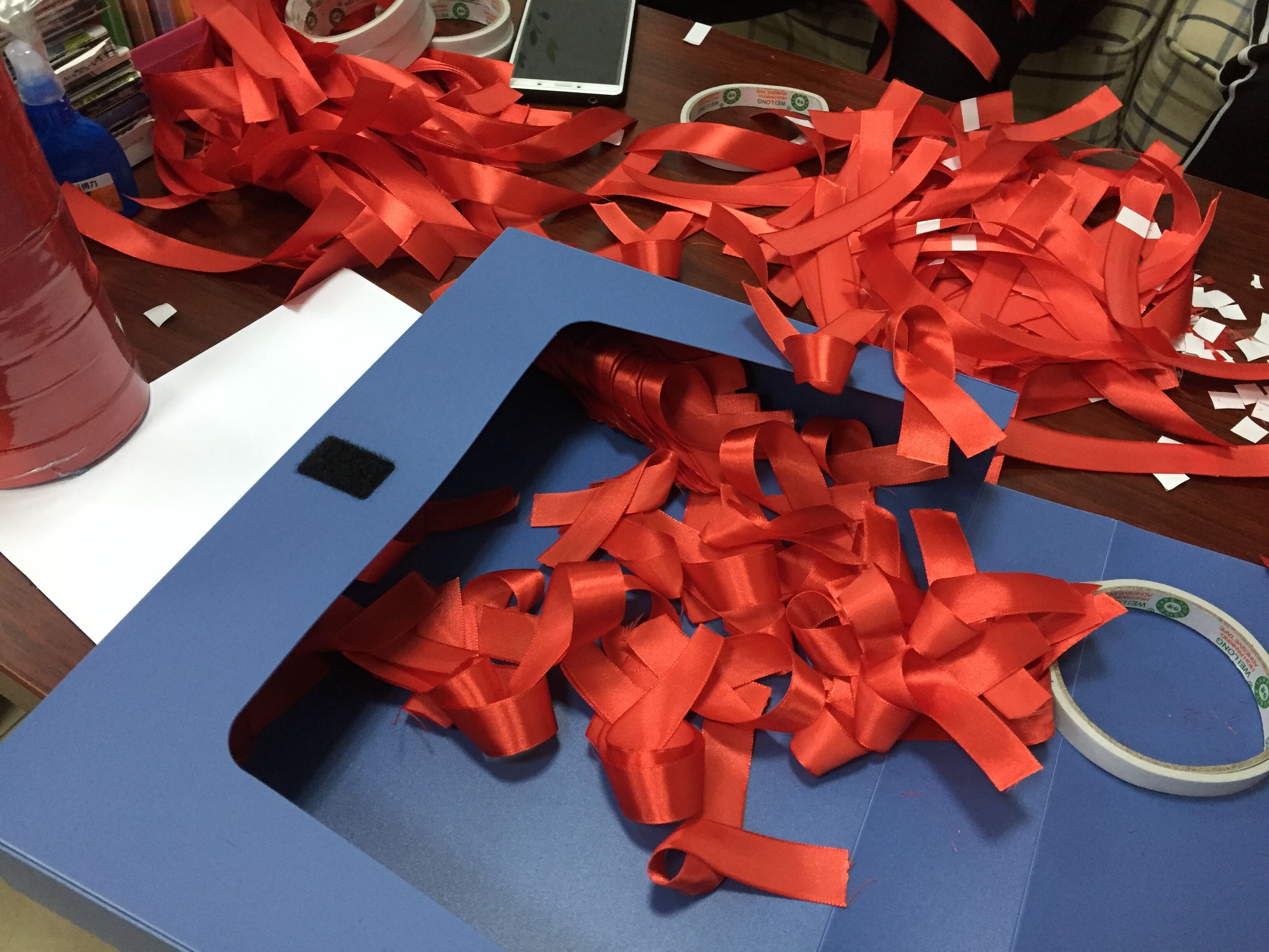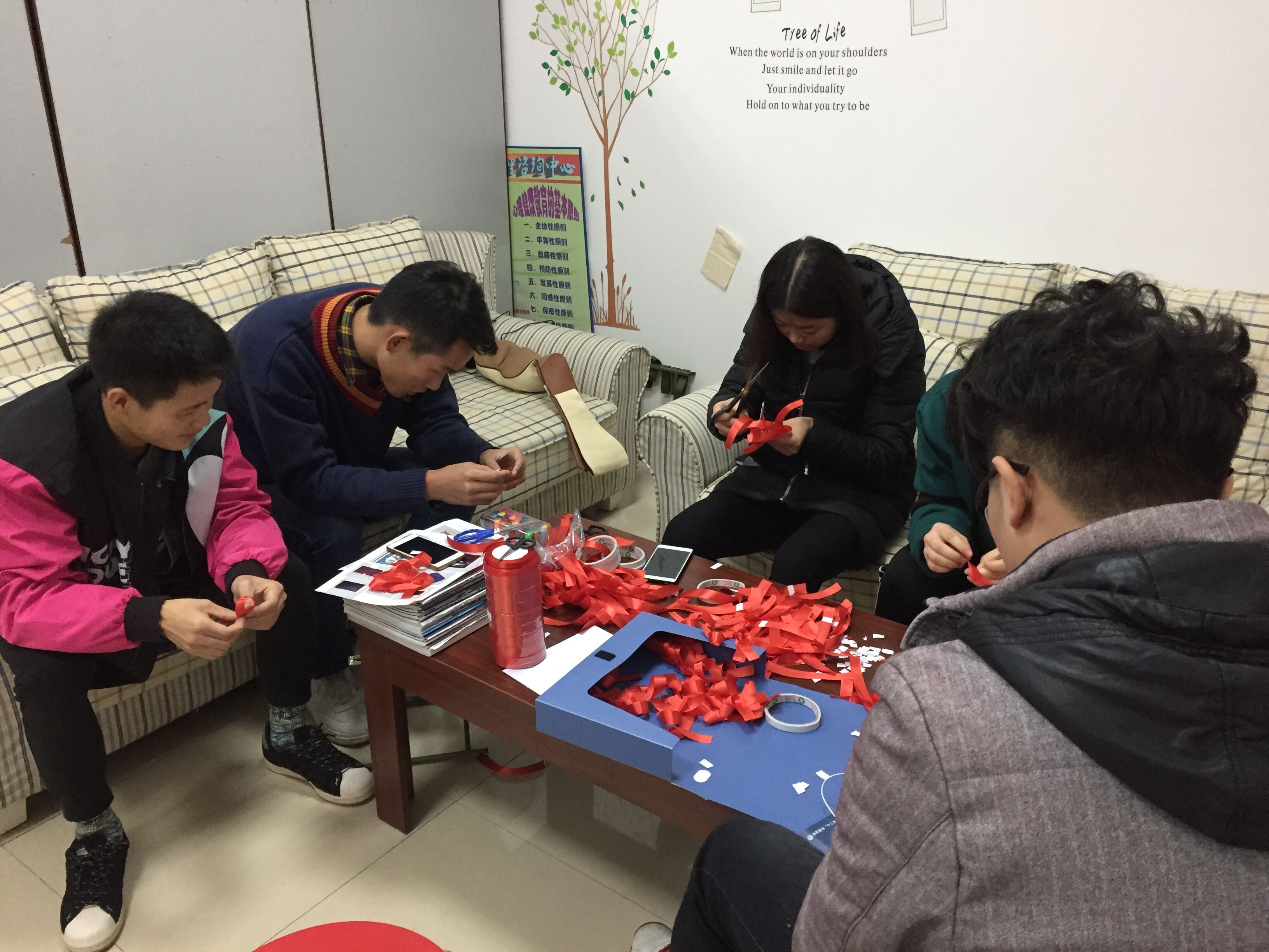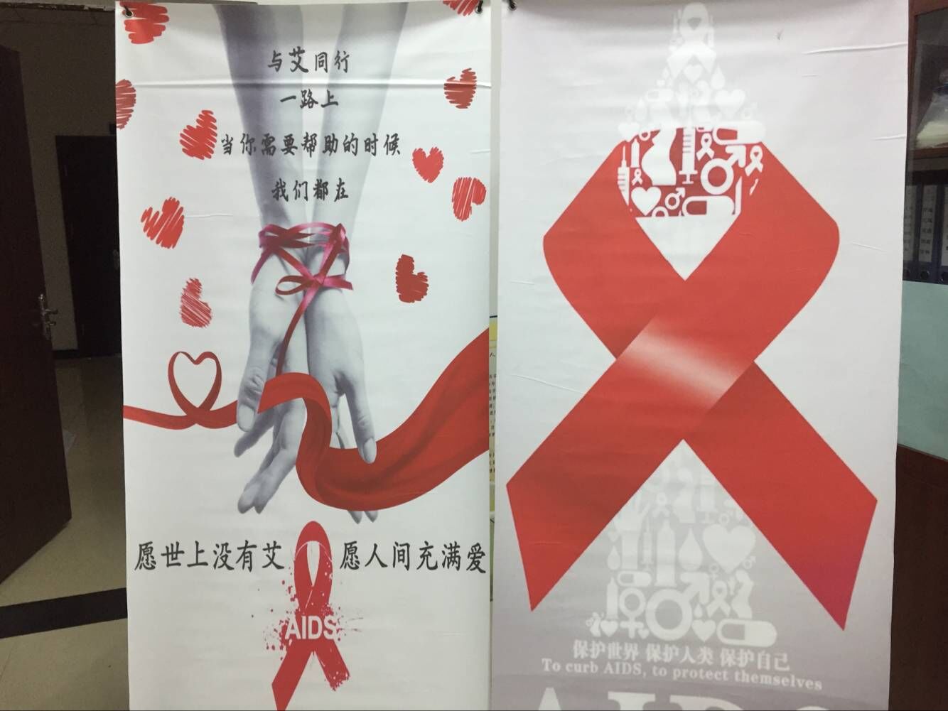 在各个寝室门上也贴上了“防艾”的标志—红丝带!让整个校园充满了关于“防艾”这个活动的气息。