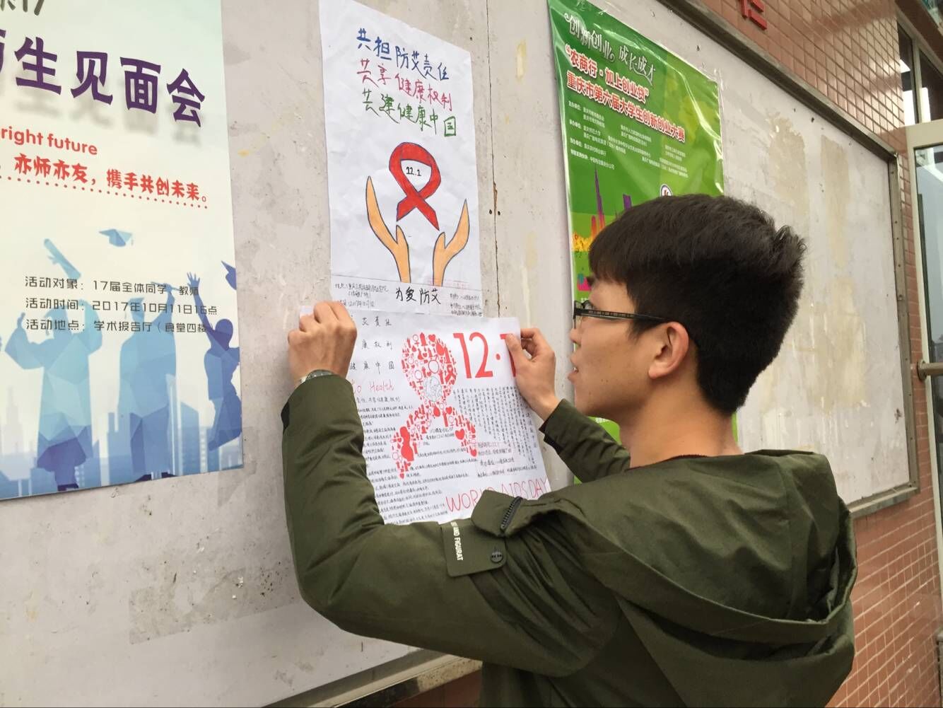 为迎接12.1的到来,重庆共运输职业学院心理成长协会积极响应政府号召,为举行防艾活动做着充分的准备。