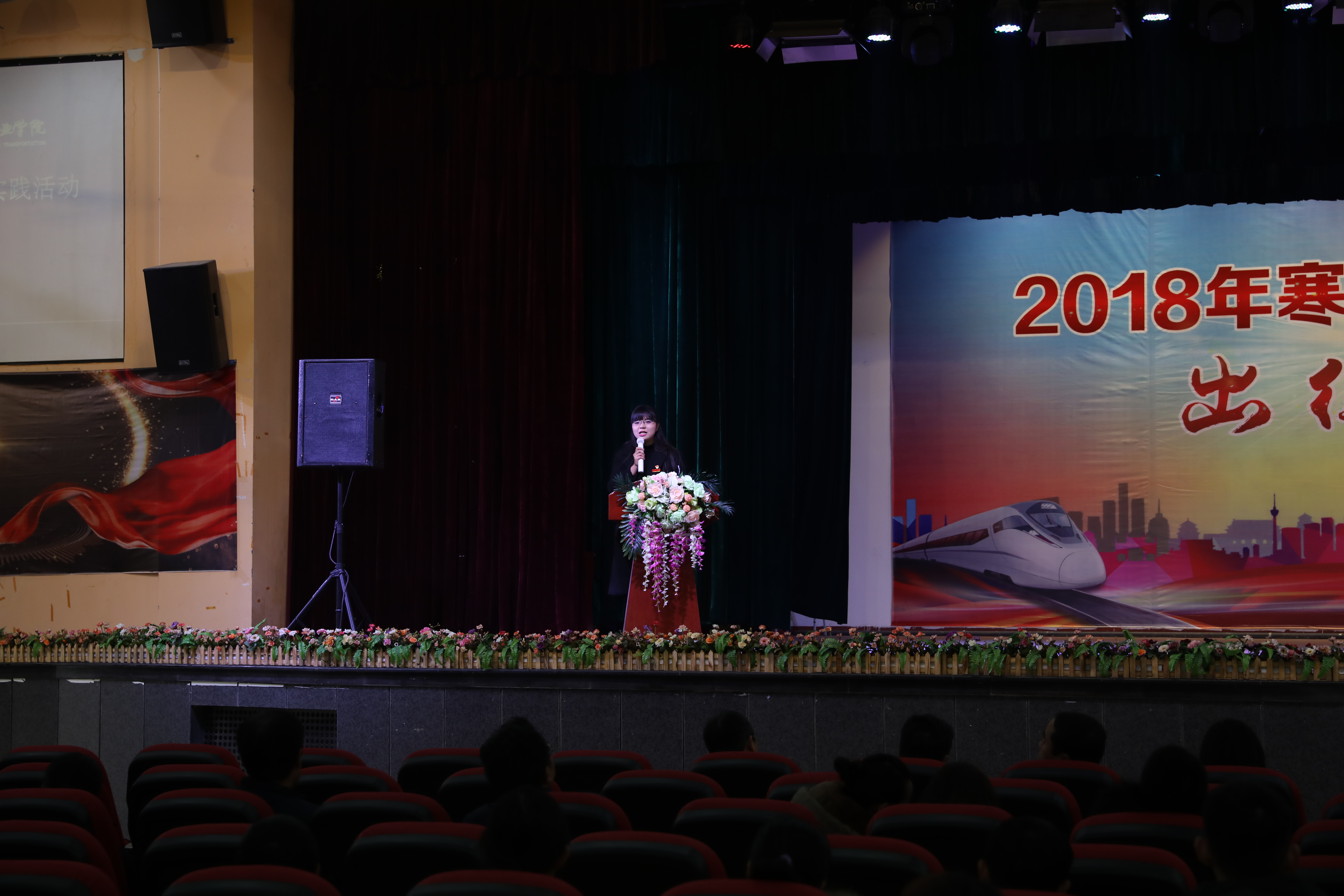 踏征程,迈开步伐砥砺前行。《让梦想成真》的出征朗诵预示同学们在接下来的实践活动中能秉承奉献自我、服务大家的原则,将此次社会实践做到最好。《2018年寒假社会实践活动方案》的解读,为在座师生解了惑,明了方向。院长赵月望寄予了厚望,鼓励了2018年寒假社会实践参与的全体师生,希望能提高自身的社会实践能力,为以后的工作打牢基础,并时时牢记是公运人,为公运争光争彩。