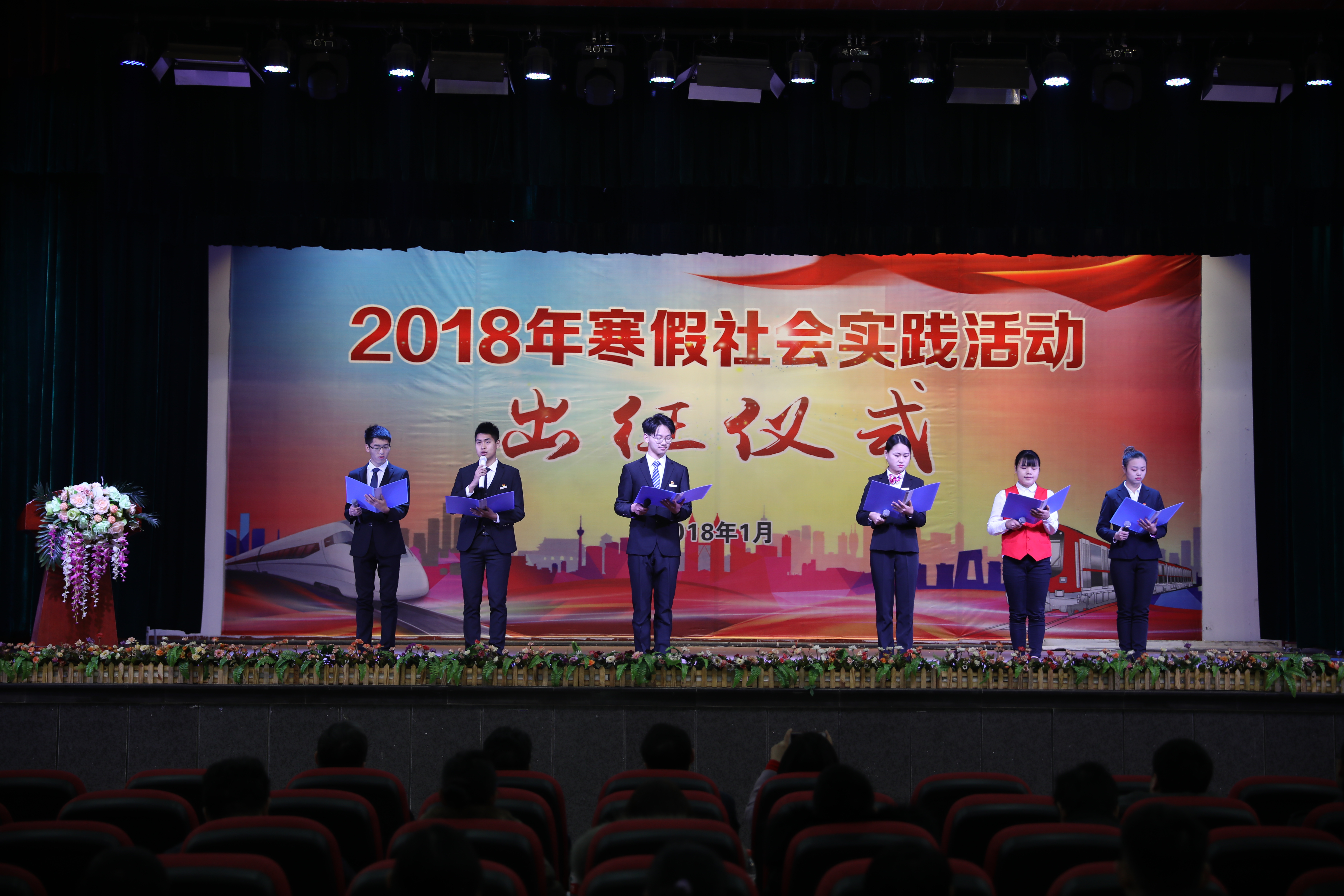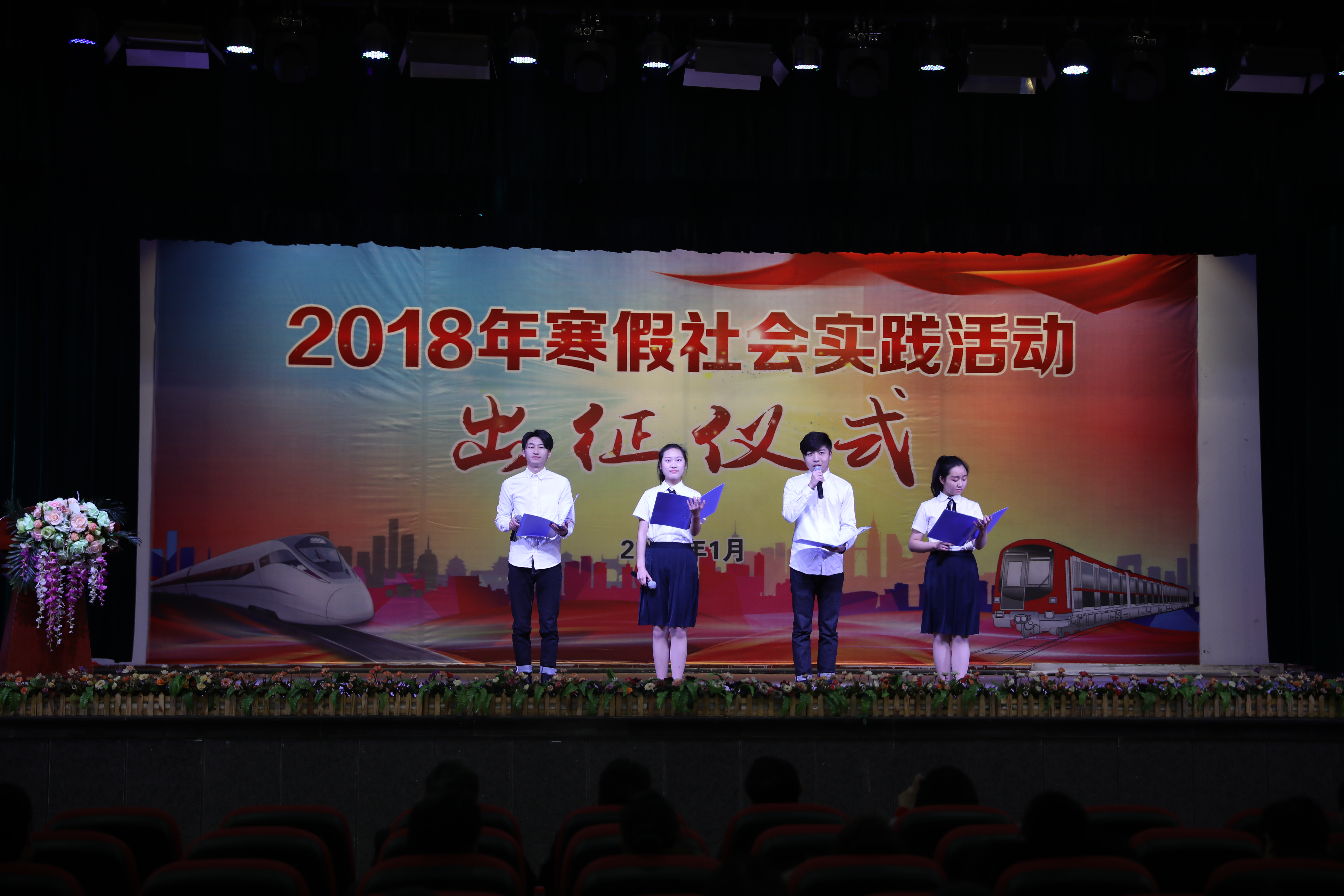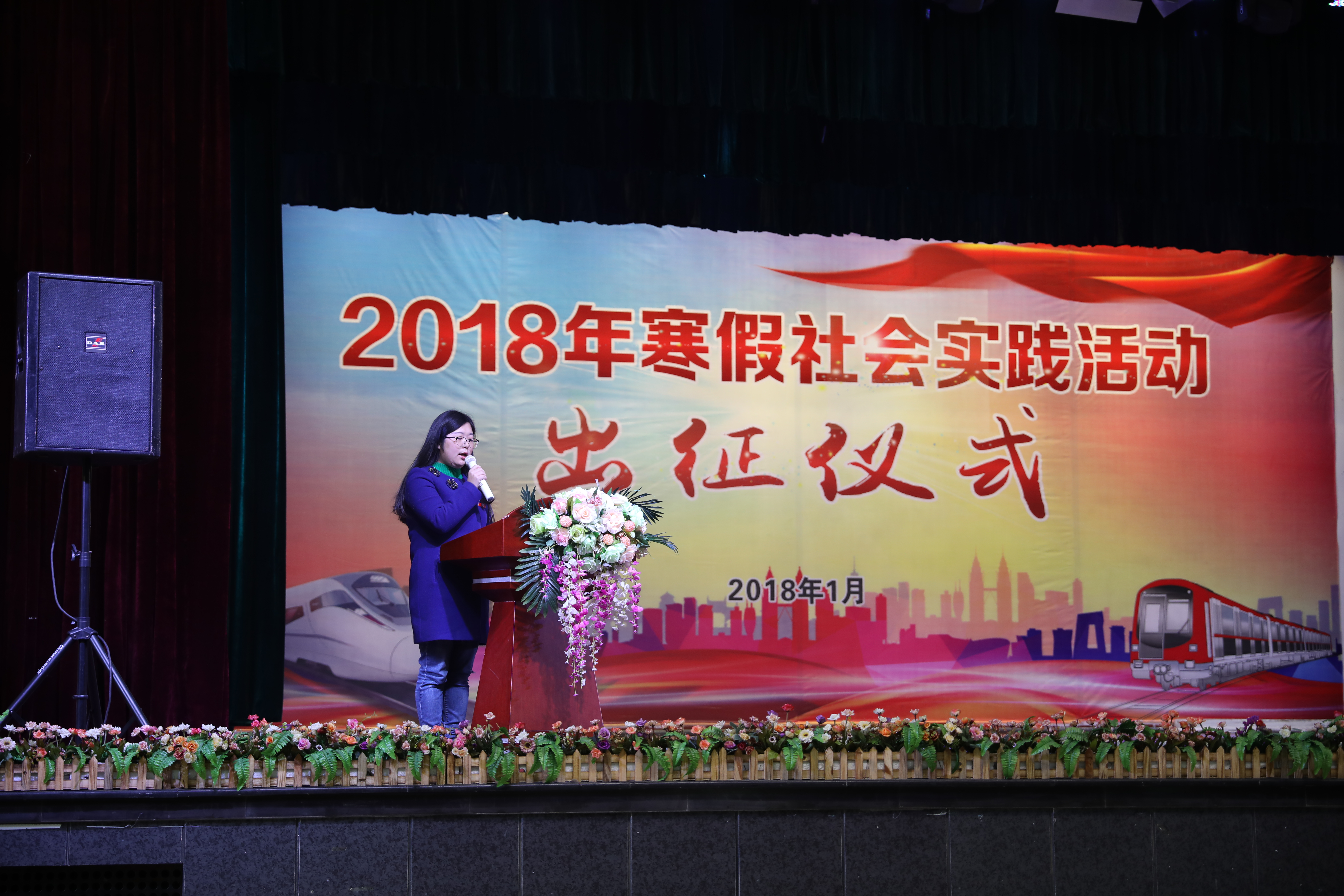 2018年寒假社会实践包括重庆客运段、重庆车站、轨道红马甲三大项目,为鼓励全体参与师生的气势,我院于2018年1月11日在学术报告厅举行了2018年寒假社会实践活动出征仪式,鼓军威,扬士气,希望2018年寒假社会实践活动再创佳绩。学院董事长李灿、院长赵月望、党委书记彭超、副院长刘畅、各职能部门负责人、各系负责人、带队教师以及1975名志愿者参与了出征仪式。