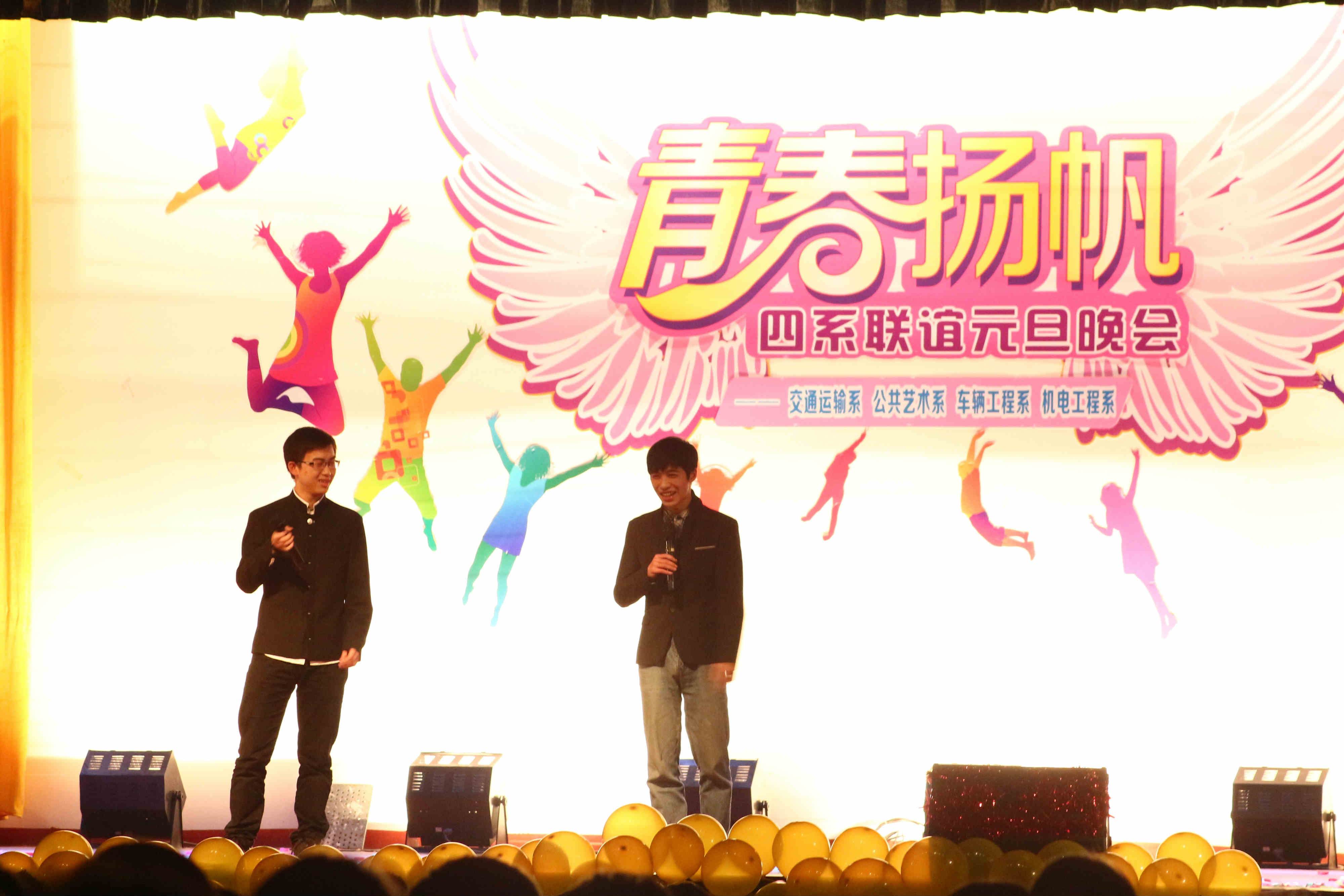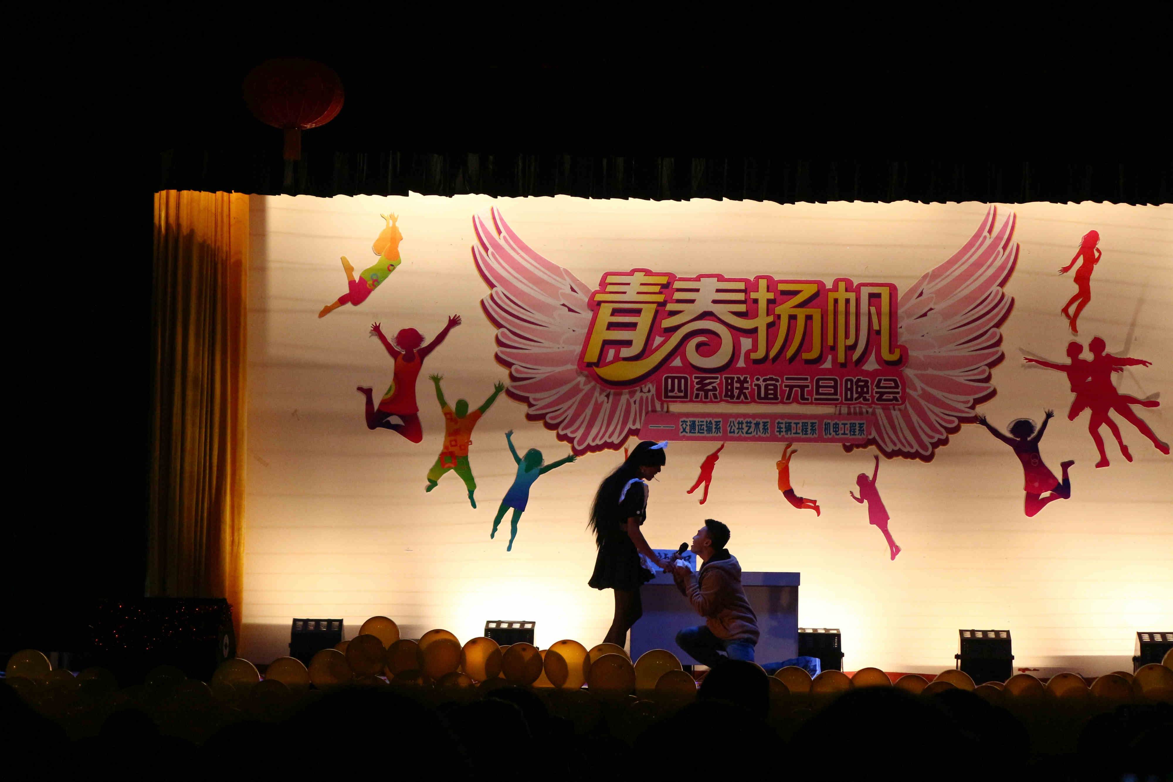 2013年12月19日19时,我们齐聚学术报告厅,在这个璀璨之夜我们迎来了澳门正规电子游戏平台四系联谊元旦晚会。出席本次晚会的嘉宾有学院党委书记彭超、党群工作处副处长陈怡、学生处副处长刘妮娅、学生处副处长丁汝崇、车辆工程系主任庞远智、交通运输管理系主任赵柱文,以及部分处室、系部的老师和全体同学们。