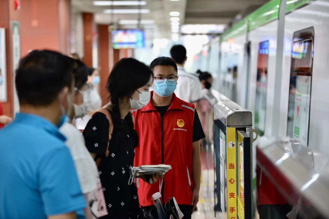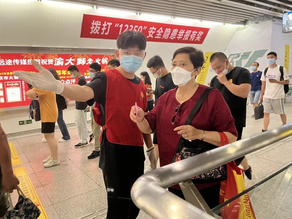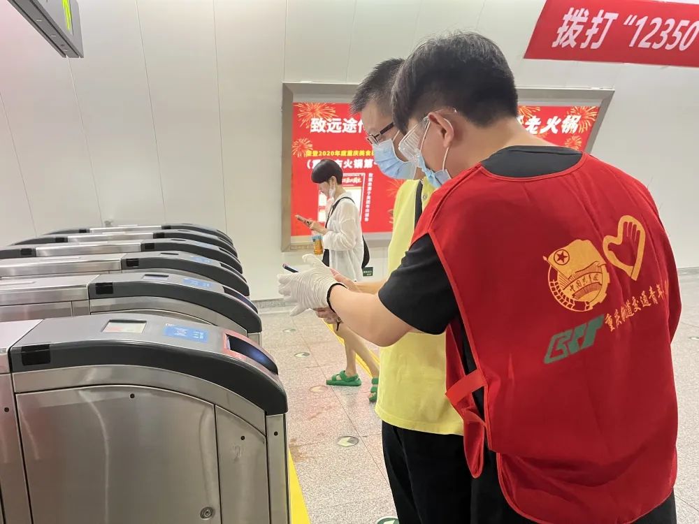 我被分到2号线的大坪站,主要工作是维持秩序和疏导无法正常出站的旅客。站内工作人员给我讲了很多注意事项,教我要明确我们自己的职责。