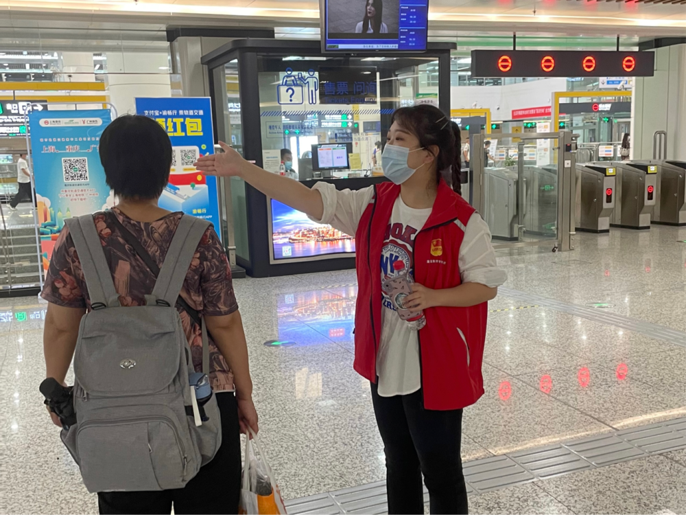 即使人流量很大,我也能从容应对各种问题,当有老人进出站不会使用乘车码时,我会上前去帮助他们顺利进出站,有时外地游客对于路线不太熟悉,我也会上前进行引导。