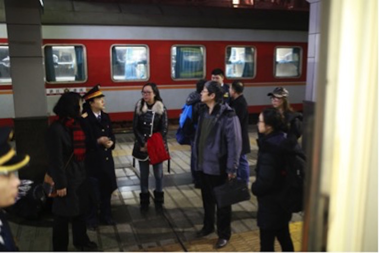 在列车出发前与上海一队王长燕副队长交流了我院志愿者的支援工作,在列车上刘院长走完每节车厢,慰问了坚守在每个岗位的同学并与之深切交谈,询问了安全车门作业操作基本流程并亲自操作,同时与同学们畅谈了跟车的感受并提出了要求,希望同学们珍惜铁路春运社会实践机会,遵守相关职业纪律,将把对纪律、制度的敬畏带回学院,做符合相关职业要求的合格大学生。