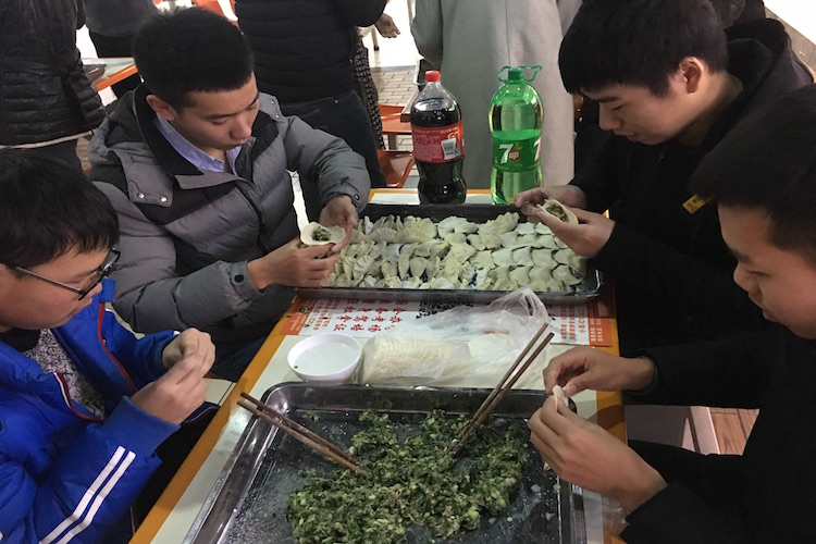为了让我们的留校同学们感受到家的温馨,老师们特地将学院食堂一楼布置得喜气洋洋,吹气球、挂福字、中国结、贴春联,年味十足!与此同时,食堂的叔叔阿姨将提前备好的饺子皮、饺子馅端到餐桌上来。彭书记、刘院长带着同学们包起饺子来,不少同学还是第一次包饺子,彭书记手把手教同学们如何包饺子,同学们热火朝天,主动分享在春运志愿服务路上的暖心故事。