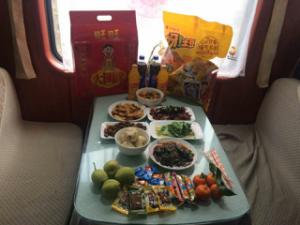 替已经回家的旅客开心是一方面,但也压制不了心里的牵挂,就像风走过很多很多里,不问归期。“在火车上怎么就不能过年了?”吃饭的时候听到列车长这样说到。低头一看,不管是回锅肉,还是糯米饭团,还是旺旺大礼包,都洋溢着过年的喜庆气氛。说实在的,我很感动,本以为是冷冰冰的工作填满我,没想到哥哥姐姐们有这样暖心的一面,我们举杯,我们庆祝,我们有说有笑地吃着热腾腾的、特殊的、不一样的团年饭。想想工作上哥哥姐姐对我的照顾,一种说不清道不明的感动,难以形容的温暖涌上心头。听说,一个人的家只有一个,而我在这里却能找到家。如果可以,恨不得让时光凝固下来,让我牢牢地记住哥哥姐姐们不是亲人却胜似亲人的温情。
