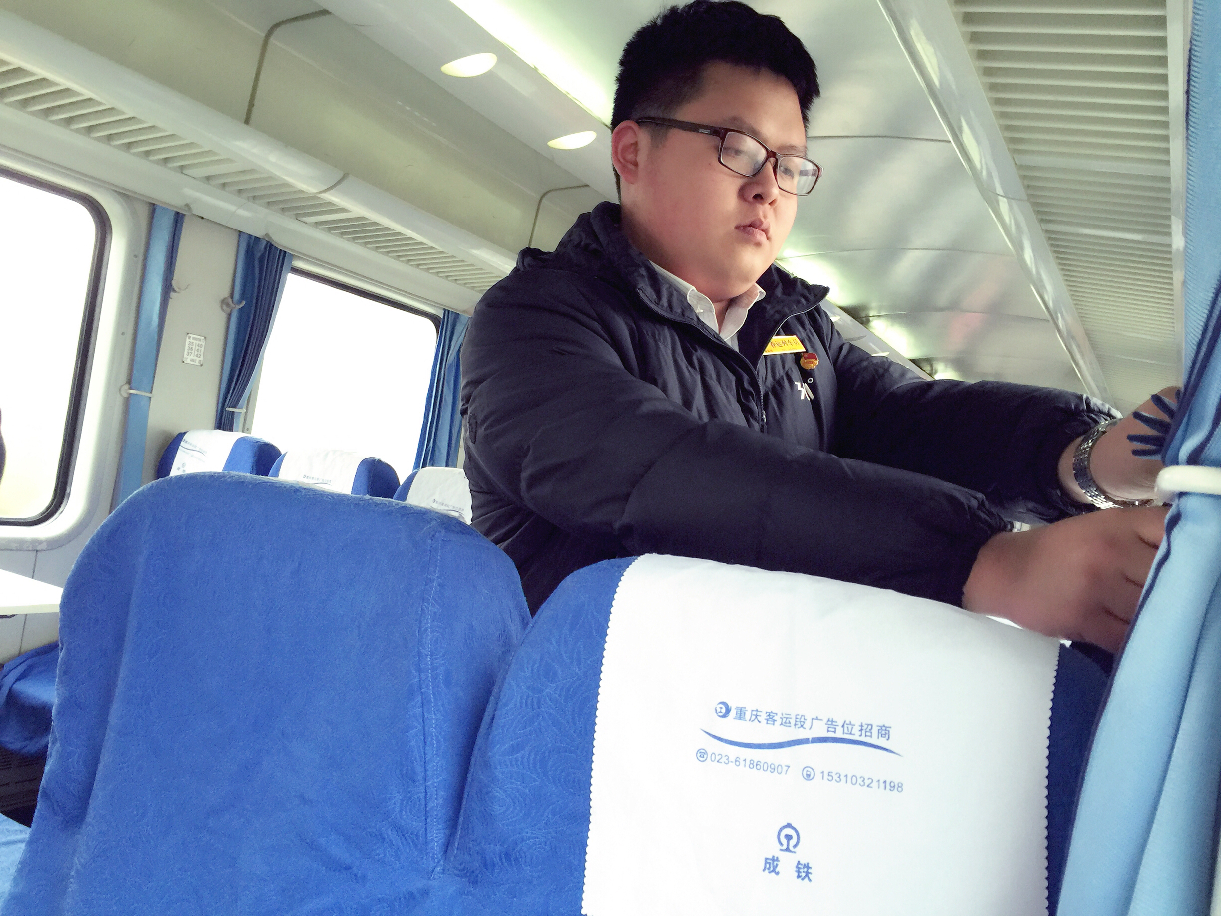 重庆北发出,沿途旅客多为短途,节前的走亲访友偏多,因此,车厢内有不少带着小孩儿的旅客,为了保证旅客的行车安全,加强车内防压防跌等安全问题的宣传城成为重中之重,他给他所担当的车厢所有带小孩儿的乘客宣传至每一空,不厌其烦。