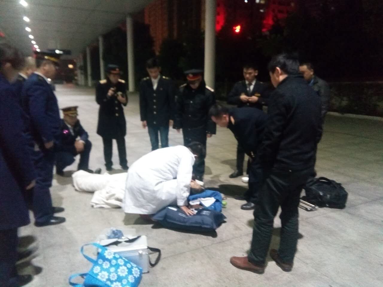 对讲机里传来“站台7号车中部有人晕倒”的急促声音,车长听到声音,立马赶往事故现场,9号车的秦伟同学,在处理完旅客到站下车后,也火速赶往现场。与此同时,10号车副组长谢小超同学,从她直乘的车厢抱出两床卧具安排旅客躺下,秦伟和胡杨同学扶住该晕倒的女乘客(中年妇女,独自一人,一手提包,一手托着笨重的行李箱)。