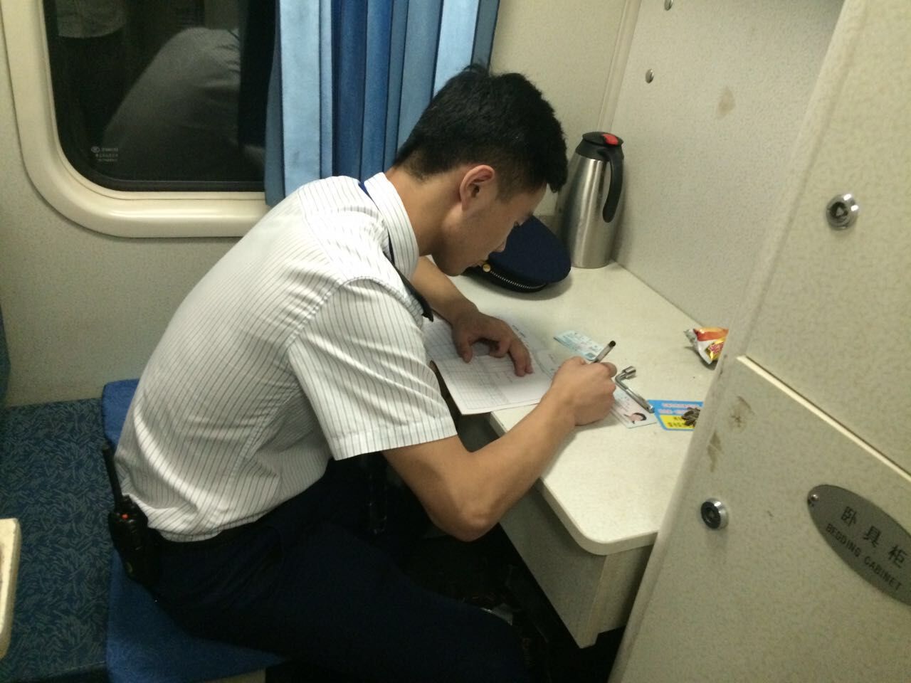 K820-5杨万梅:最开始没有去的时候有点畏惧,上车工作后感受到了暑运与春运不一样,暑运相对春运来说要严格得多,让我有点不太适应,但是在经过隔壁车厢哥哥的帮助与指导下,使自己慢慢的适应暑运的模式,最后得到了车长的表扬与肯定,感到很开心。